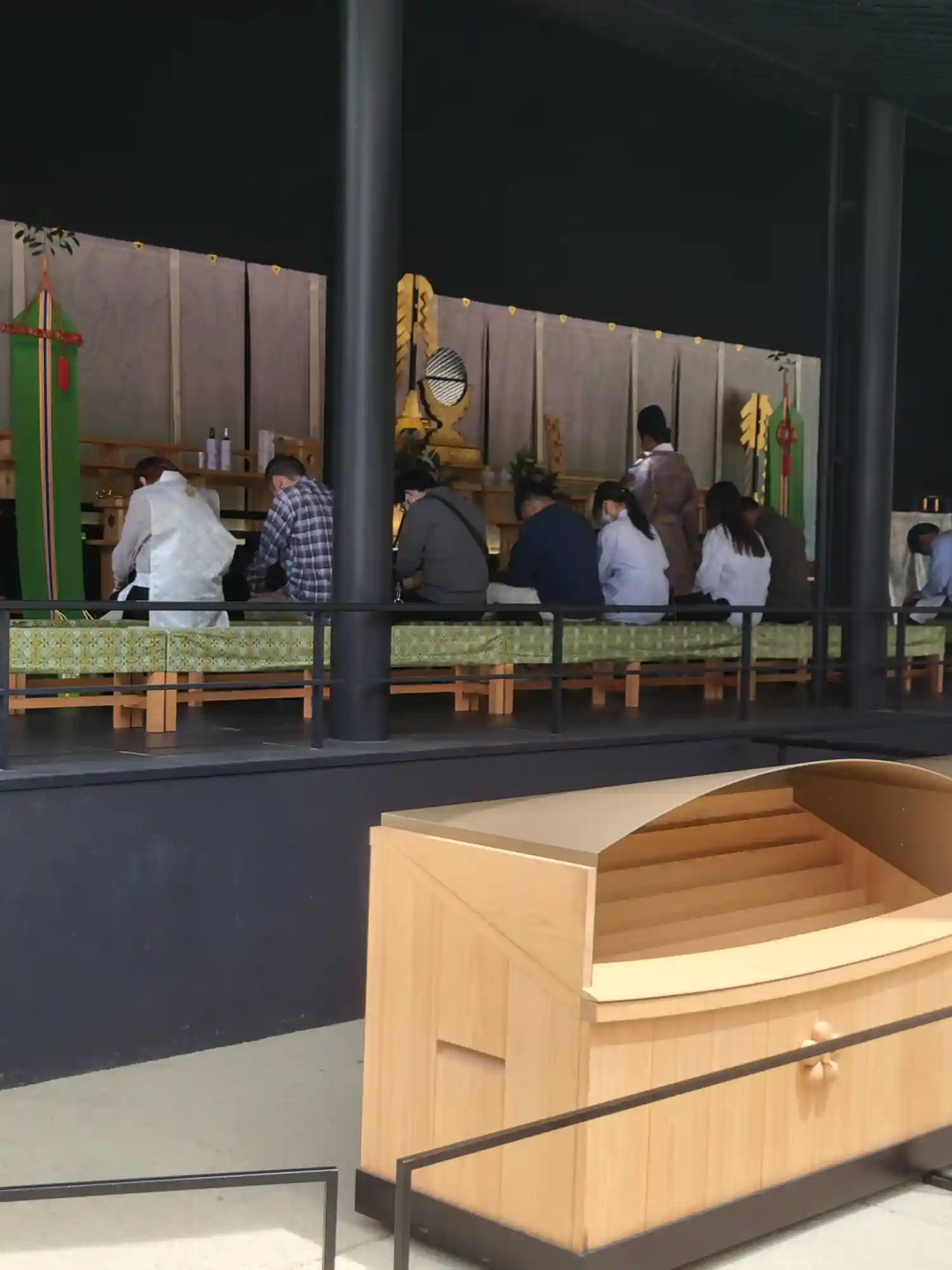 仮殿にて静かにお参りし、屋…