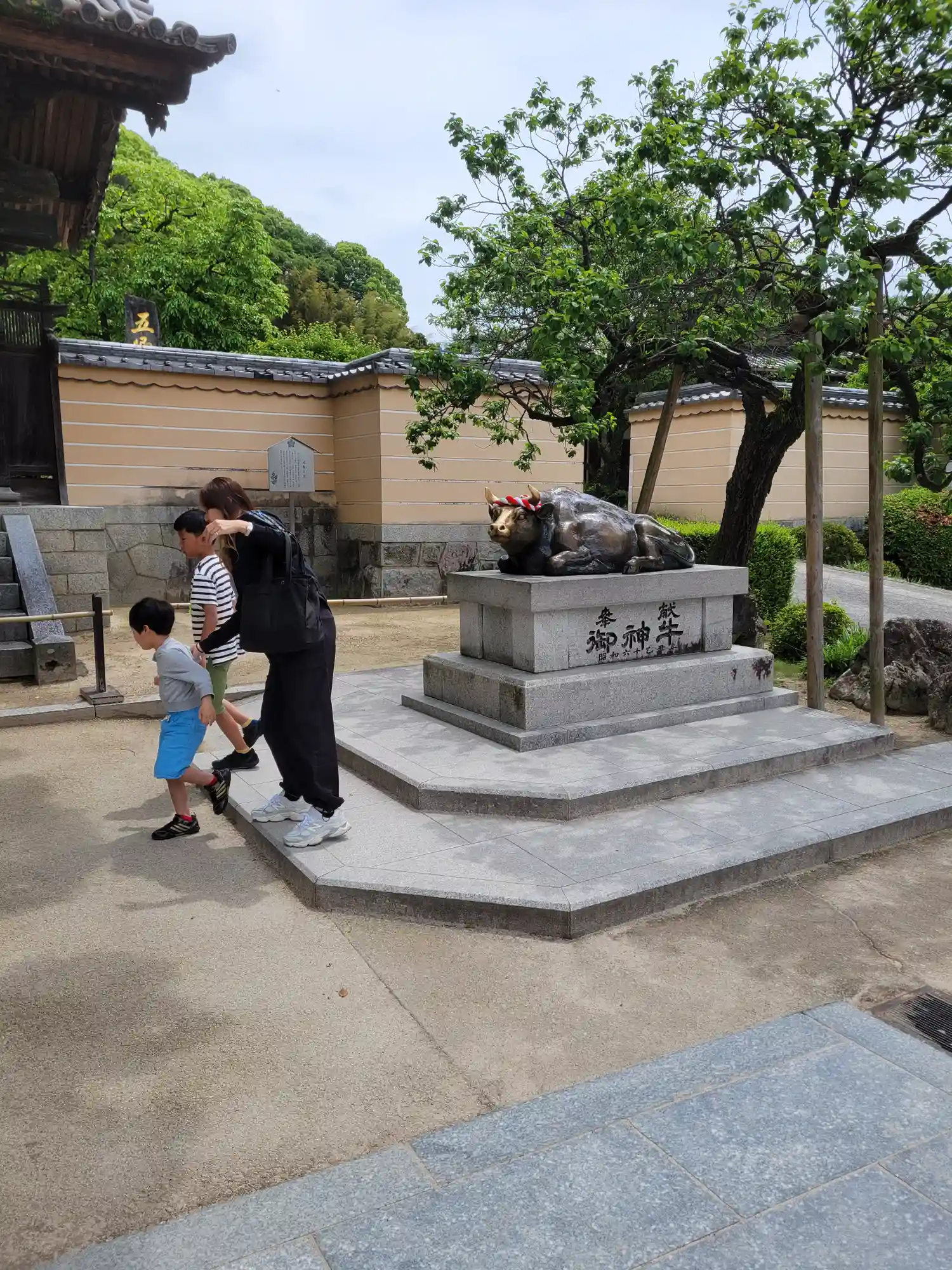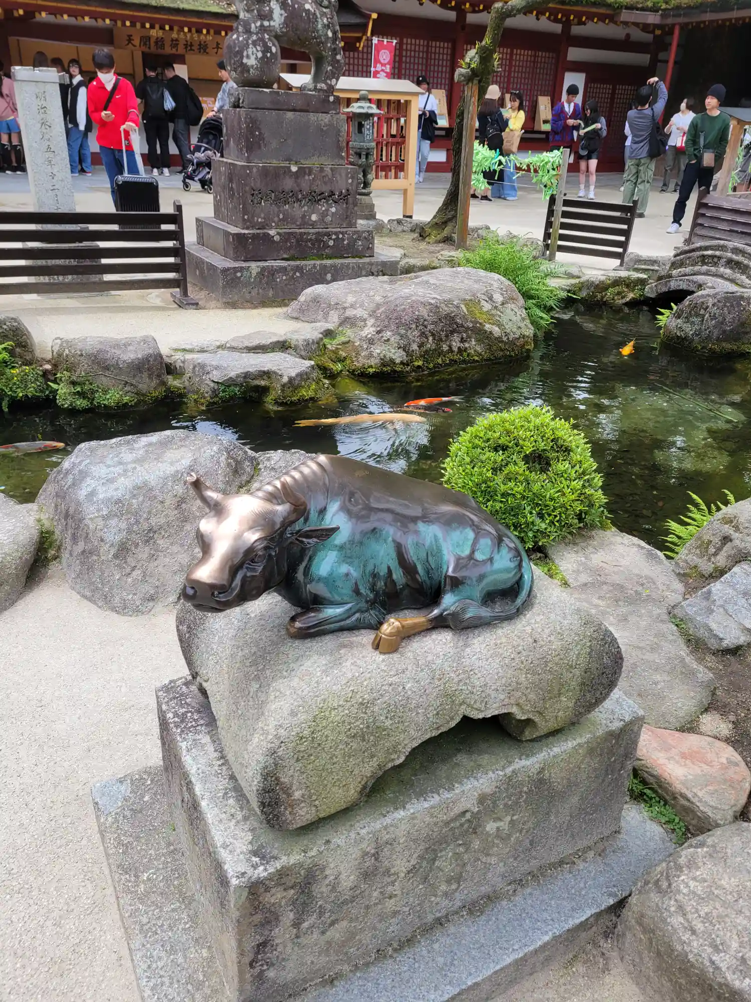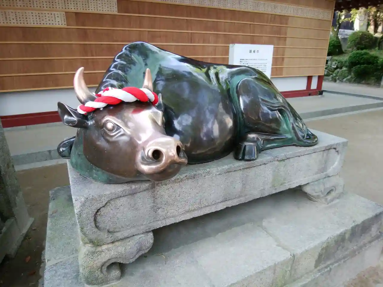 さあ、境内へ。ここを入ってすぐに、有名ななで牛さんがいますが、長蛇の列で私はパスです。