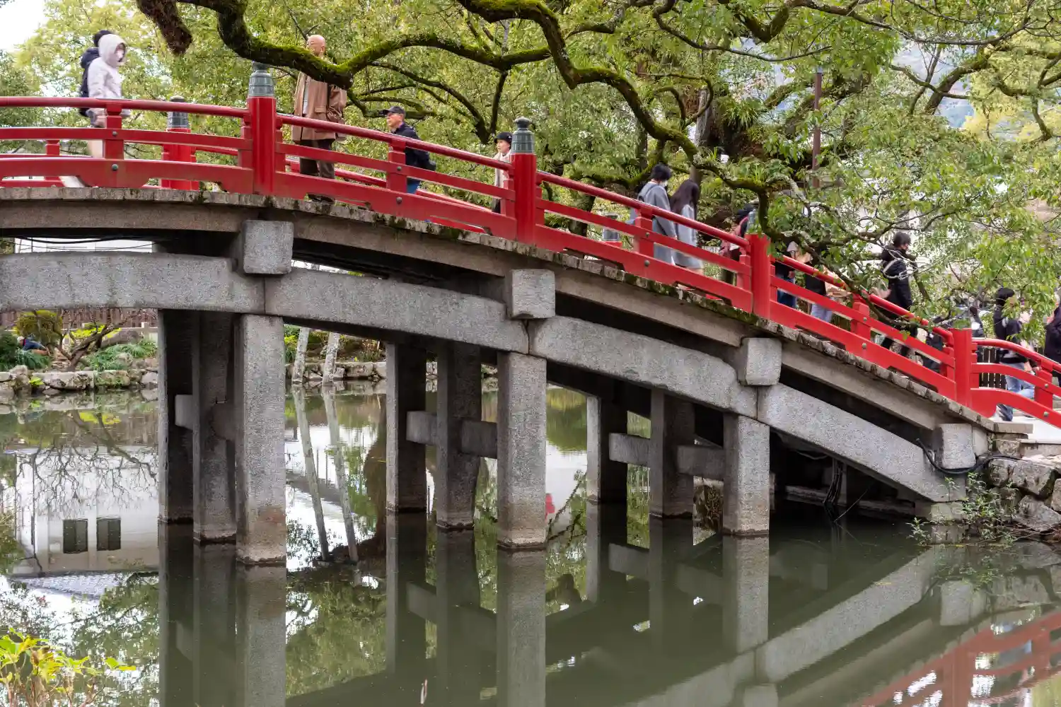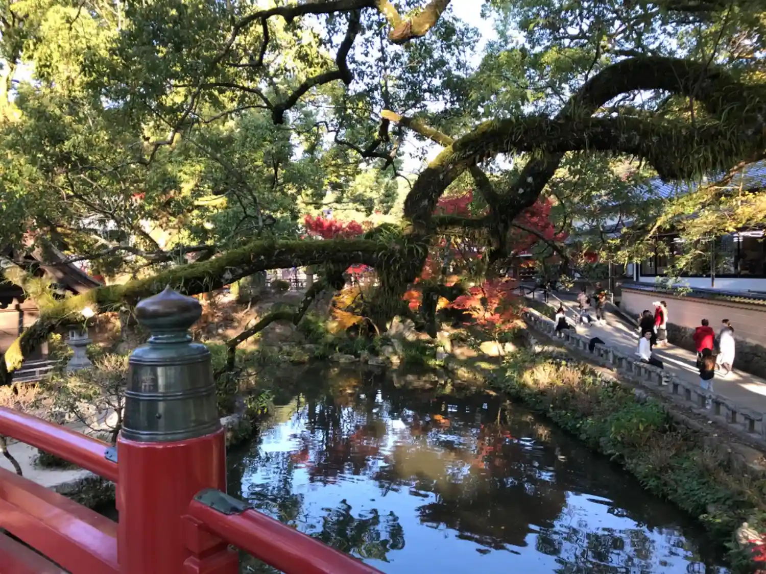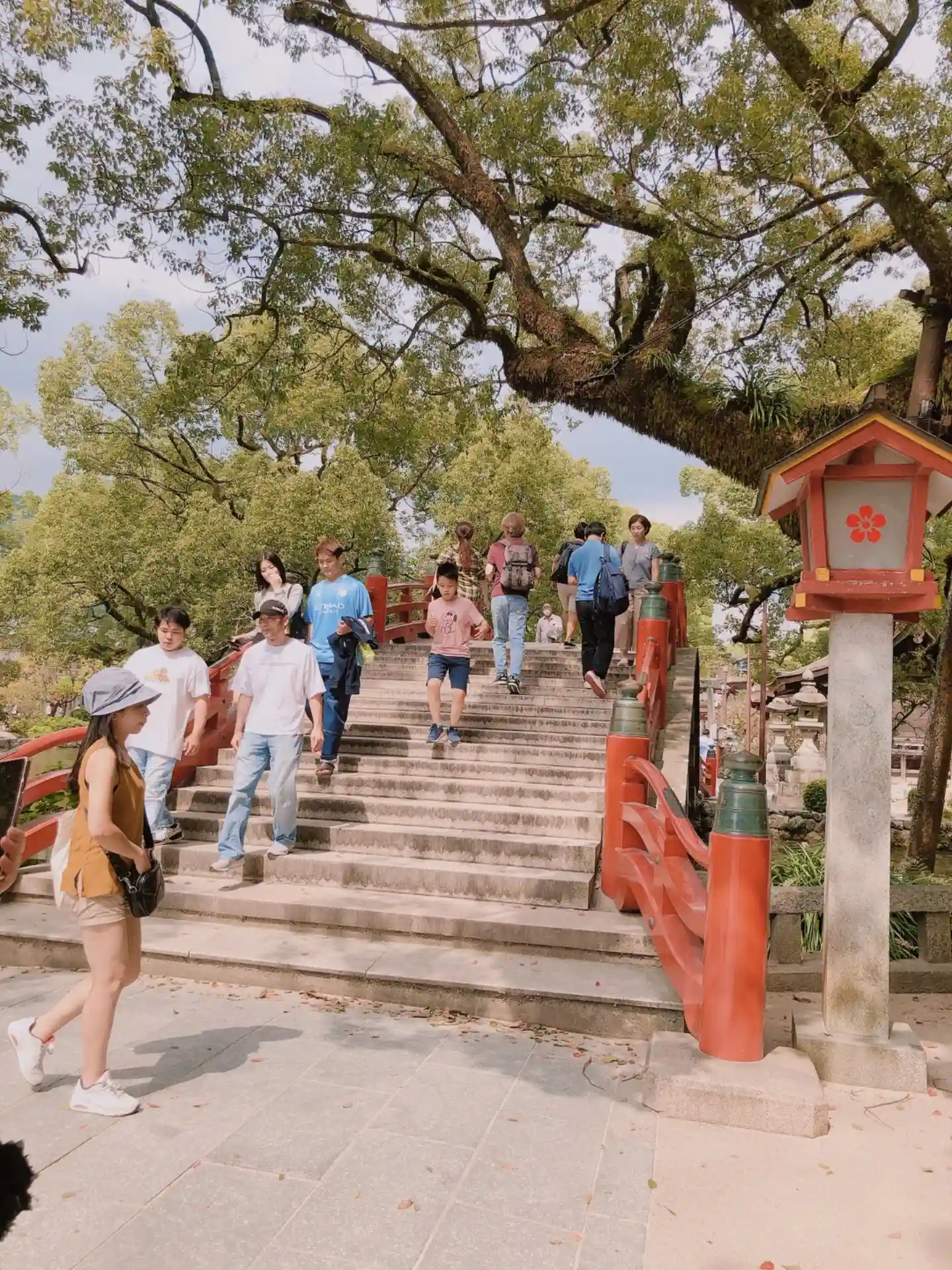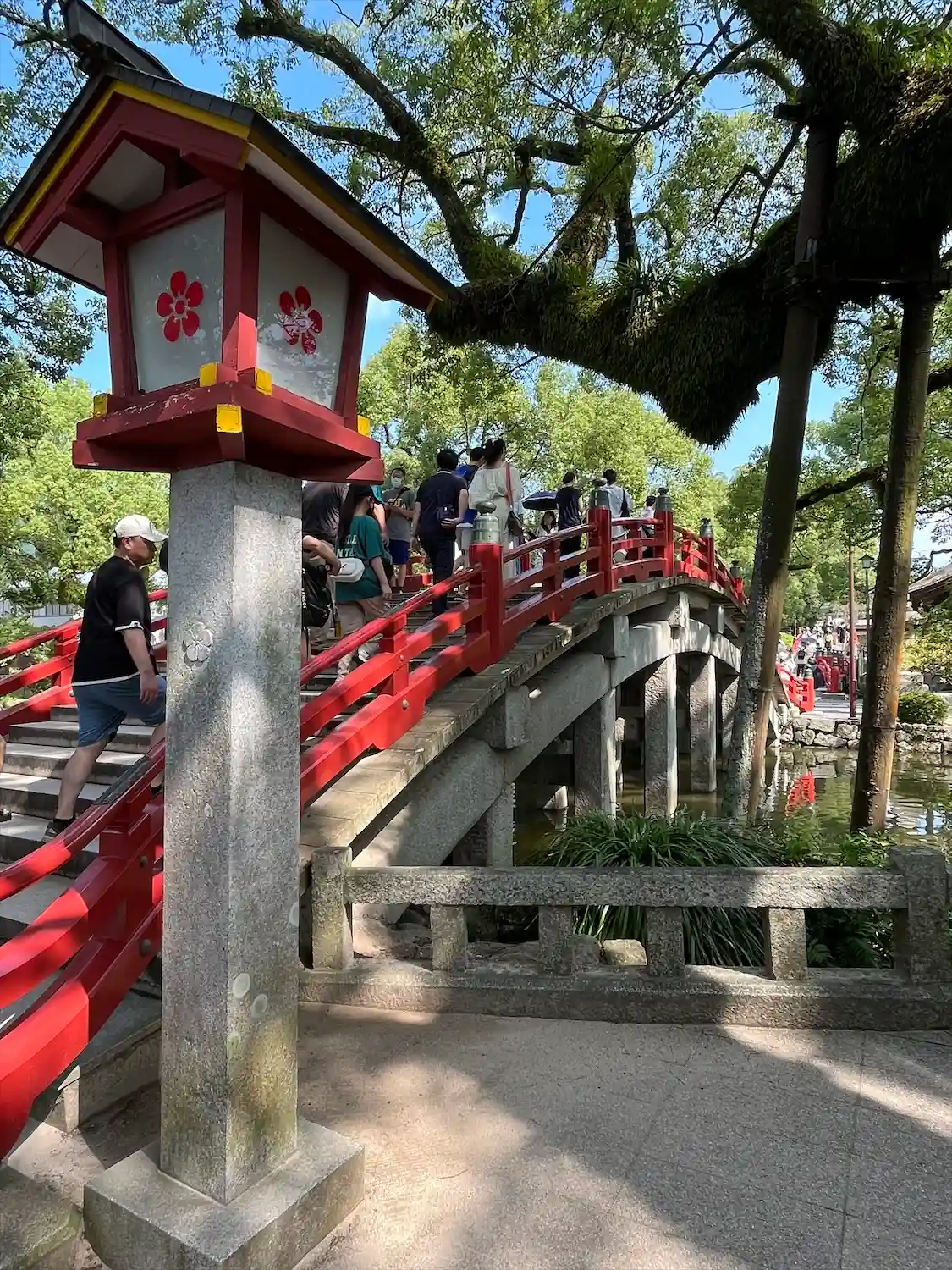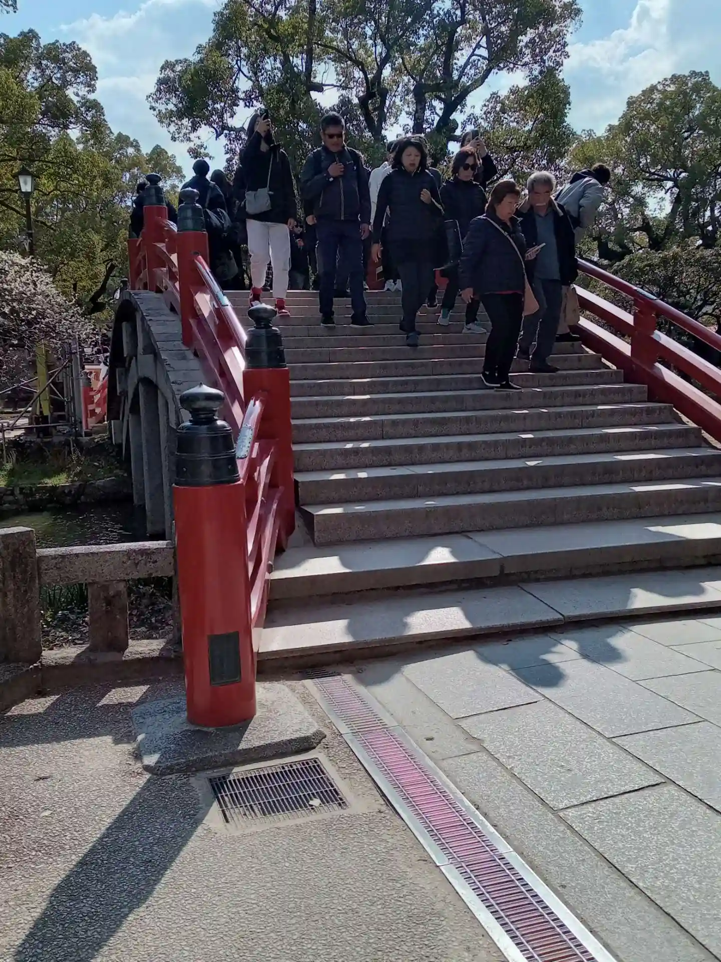 赤い橋も人で埋め尽くされてました❗