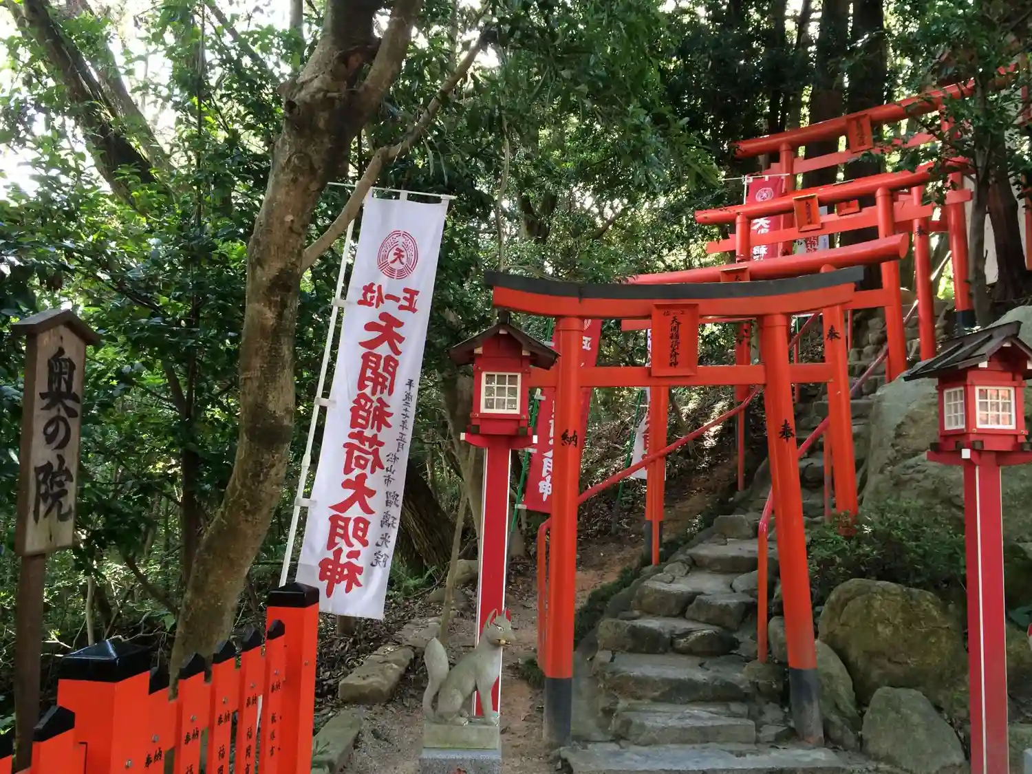 妙香庵からさらに下る。すると赤い鳥居が見えて来る。人生で2回目の天開稲荷社。前回きたのが5〜6年前…