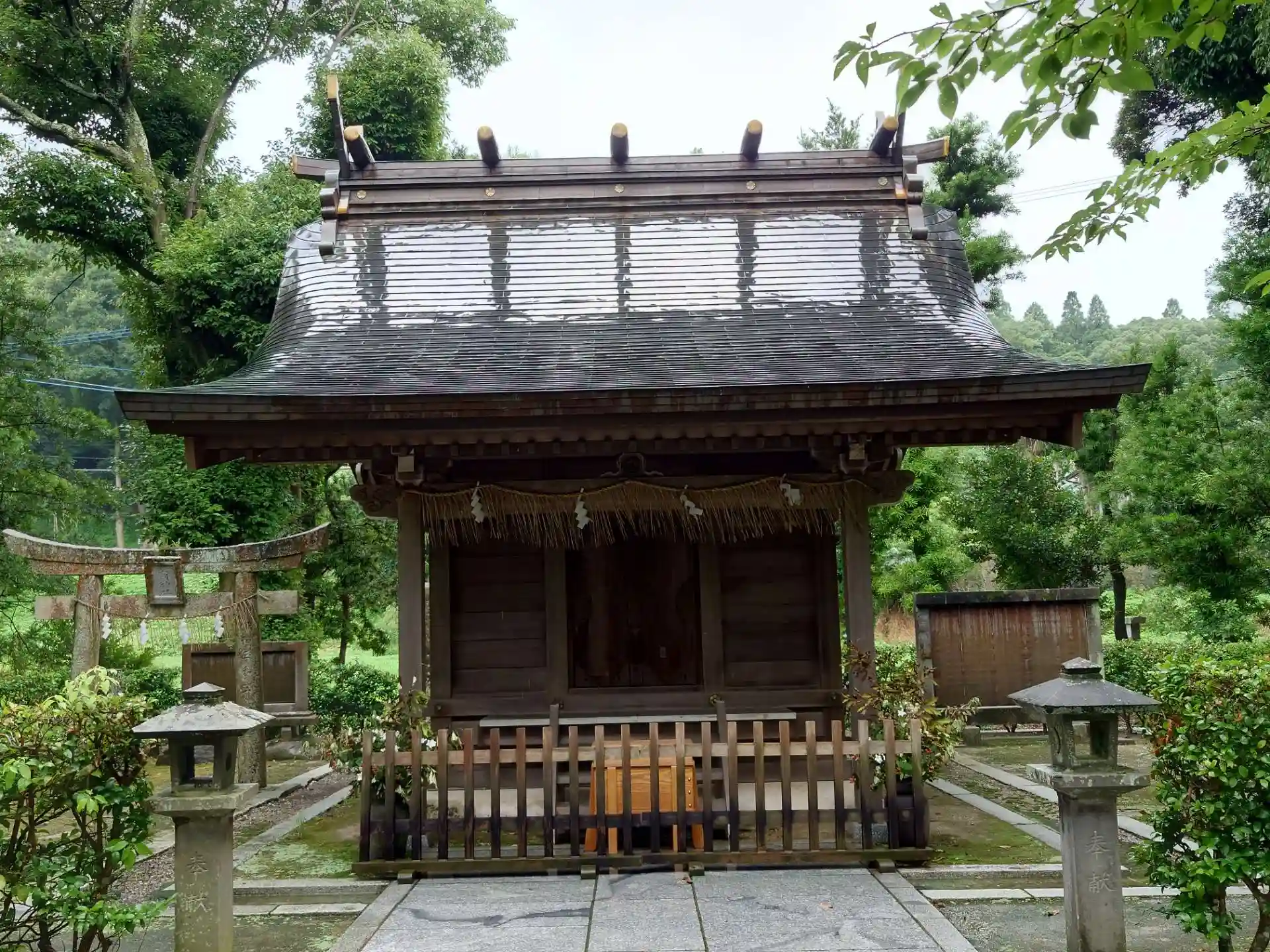 社殿脇の鳥居 奥には記念碑