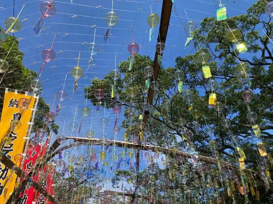 夏の宮地嶽神社。風鈴で涼を感じるものの暑かったですよ。