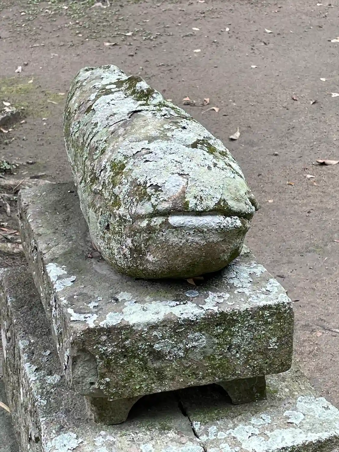 狛ナマズ 尾が二つとも折れていました