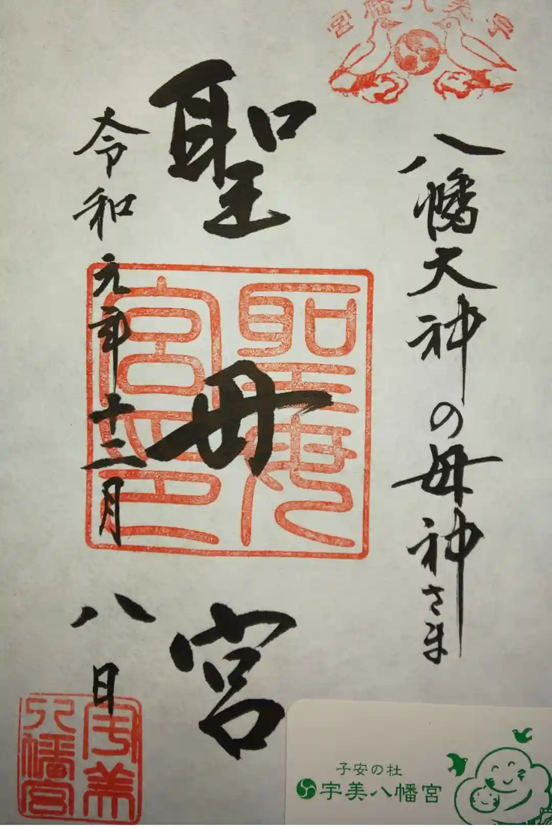 正月限定御朱印1。聖母宮。宇美八幡宮が子授けの神社と言われる所以の神様です。