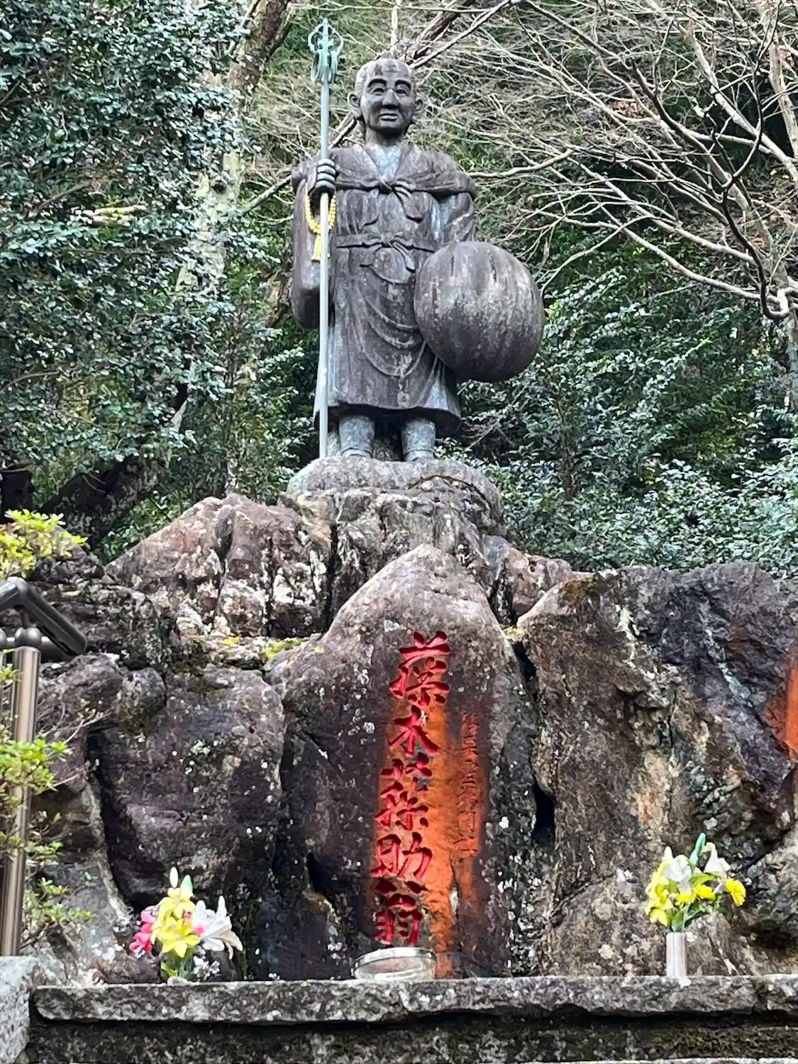 堂の前には大正11年(1922)に造られた「瑠璃光の瀧」もあったが、今は水が枯れて往年の姿を見ることはできない。