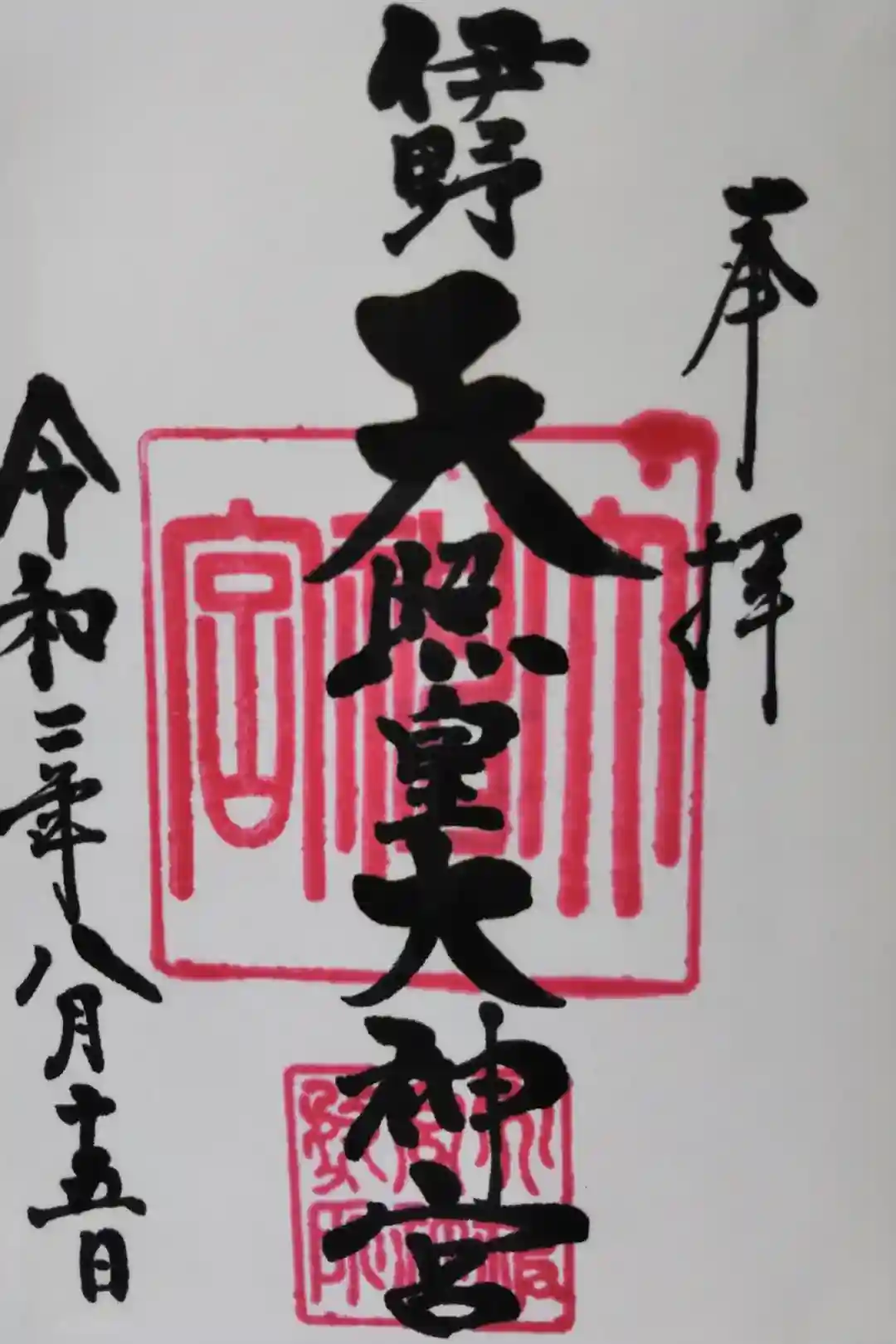 奥に進むと、仕切りの奥に伊野天照皇大神宮と書かれていて、後ろから日光が社が照らされていて綺麗でした