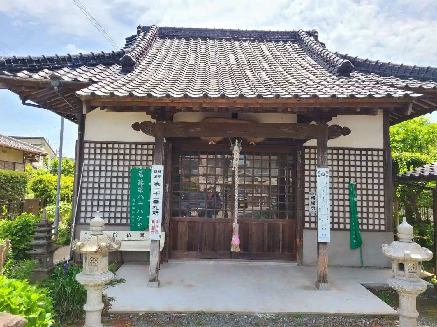 篠栗八十八箇所霊場 第二十一番札所。駐車場 お堂前。御朱印堂内。セルフスタンプ。新しめの住宅街を抜…