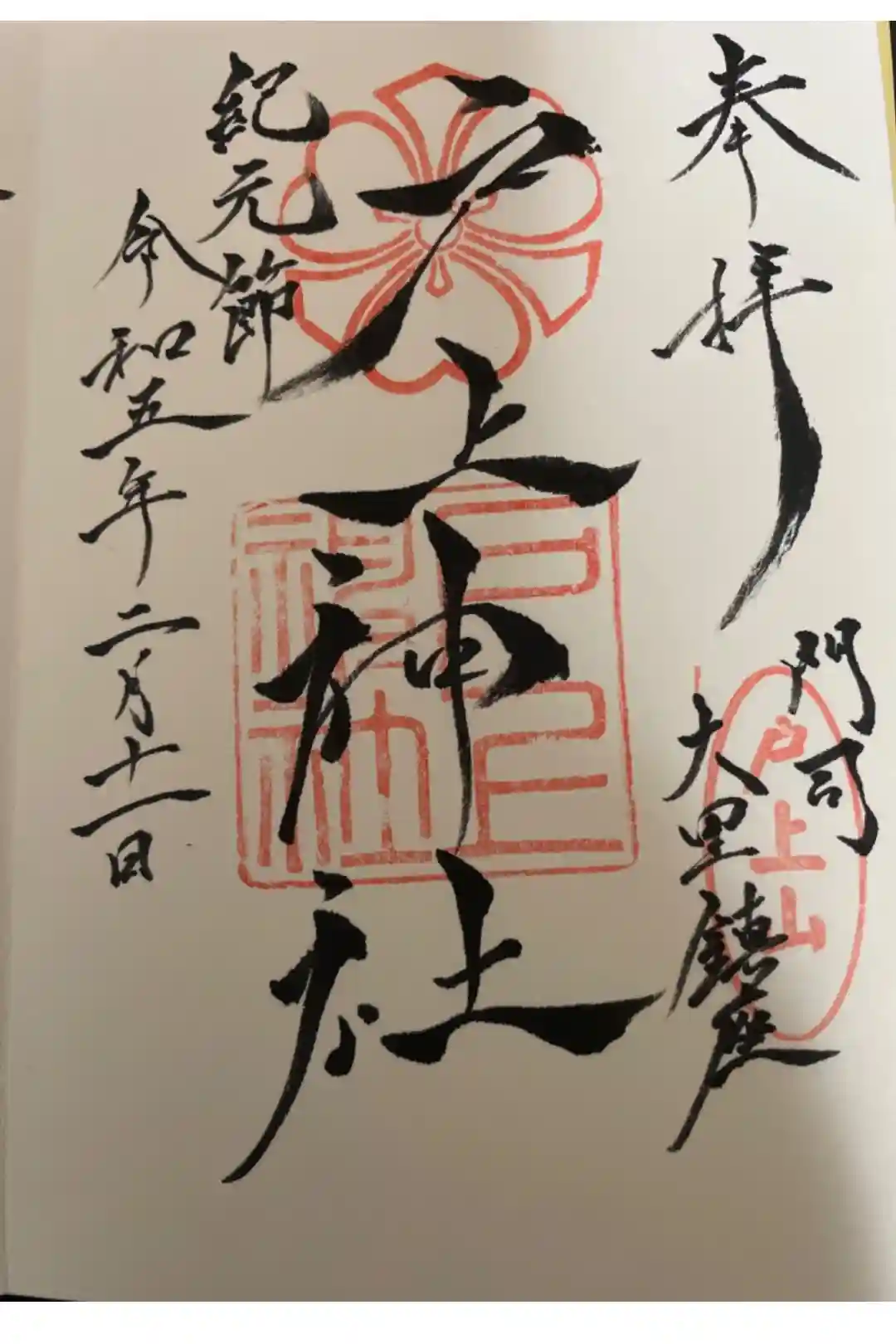 戸上神社にて御朱印を頂きました