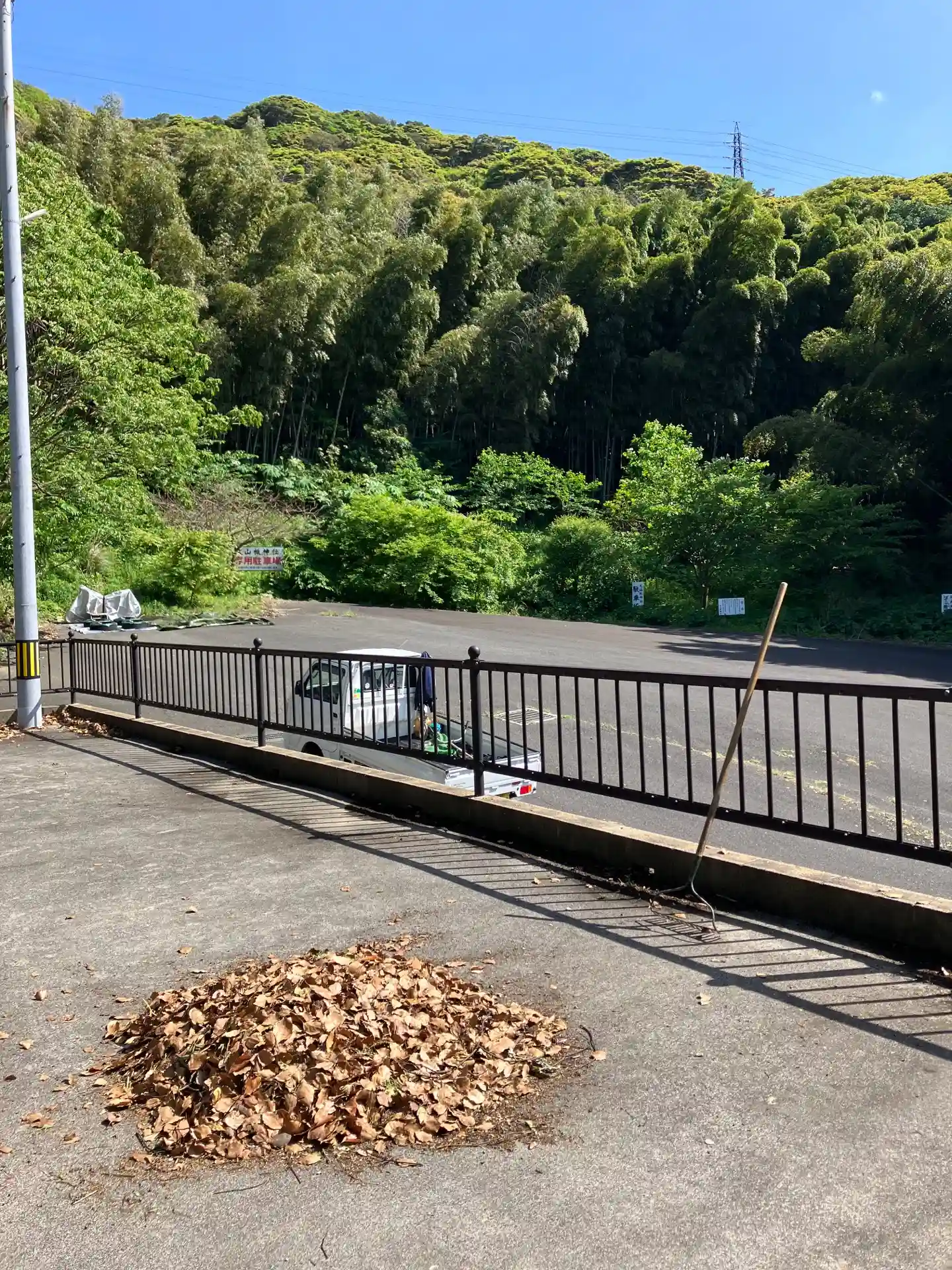 子安神社の枯れ葉の山です。