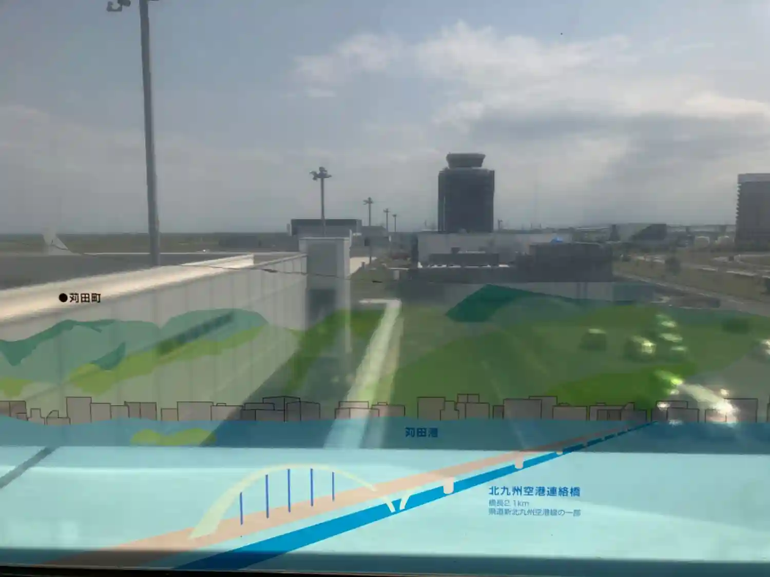 北九州空港です。海の真ん中に浮かんでいるようです。