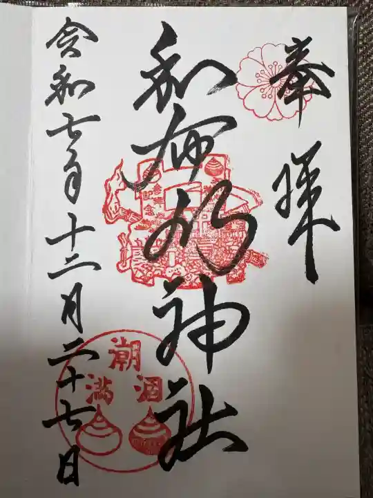 社伝によると、仲哀天皇9年(西暦200年)創建とされ、神功皇后が三韓征伐の後に創建されたと伝わる。御祭神は、天照大神の荒魂「撞賢木厳之御魂天疎向津媛命(つきさかきいつのみたまあまさかるむかつひめ)」。別称を「瀬織津姫」といい、潮の満ち引きを司る神である。