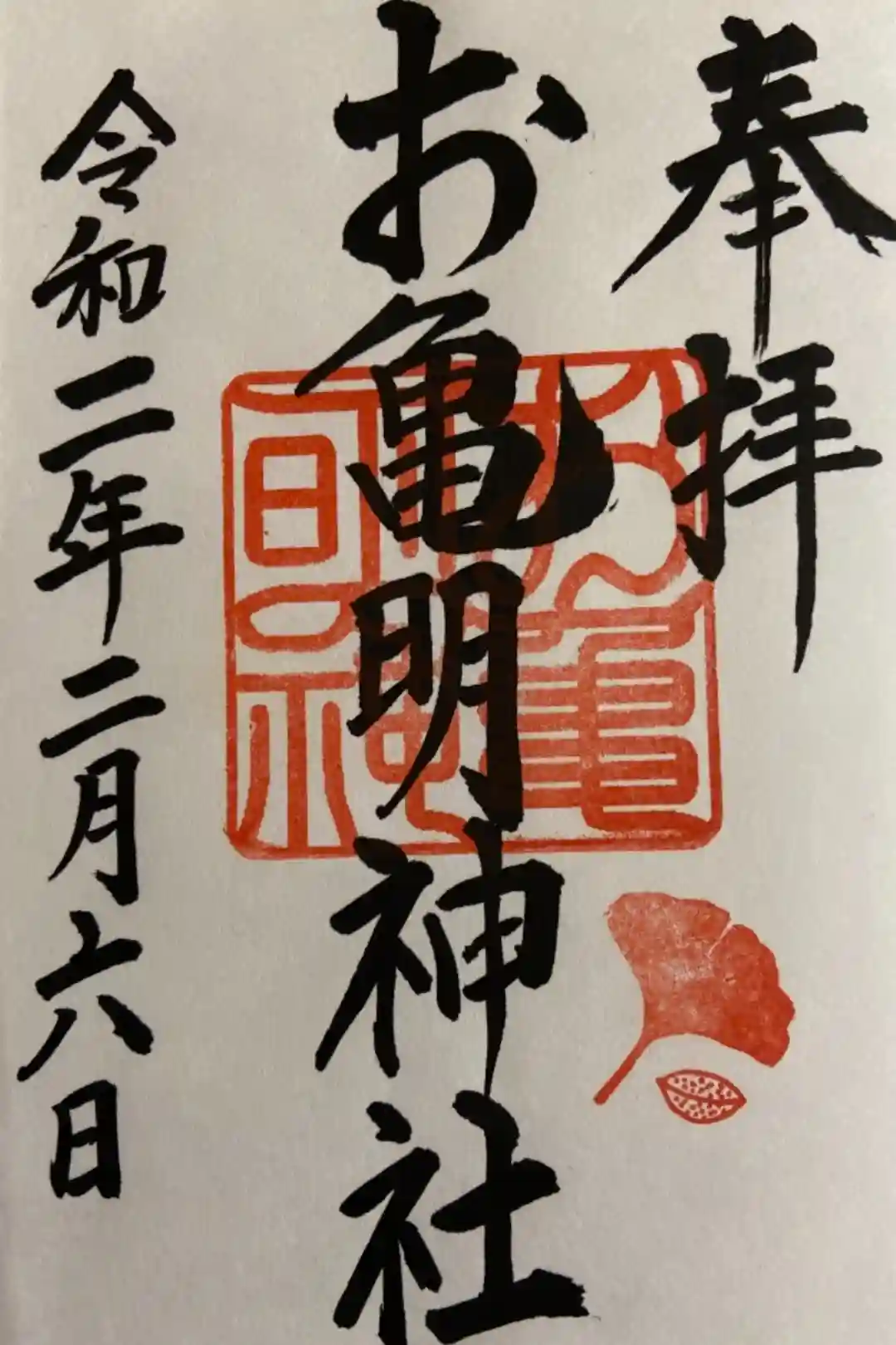 御朱印は亀山八幡宮にて拝受いたしました。
