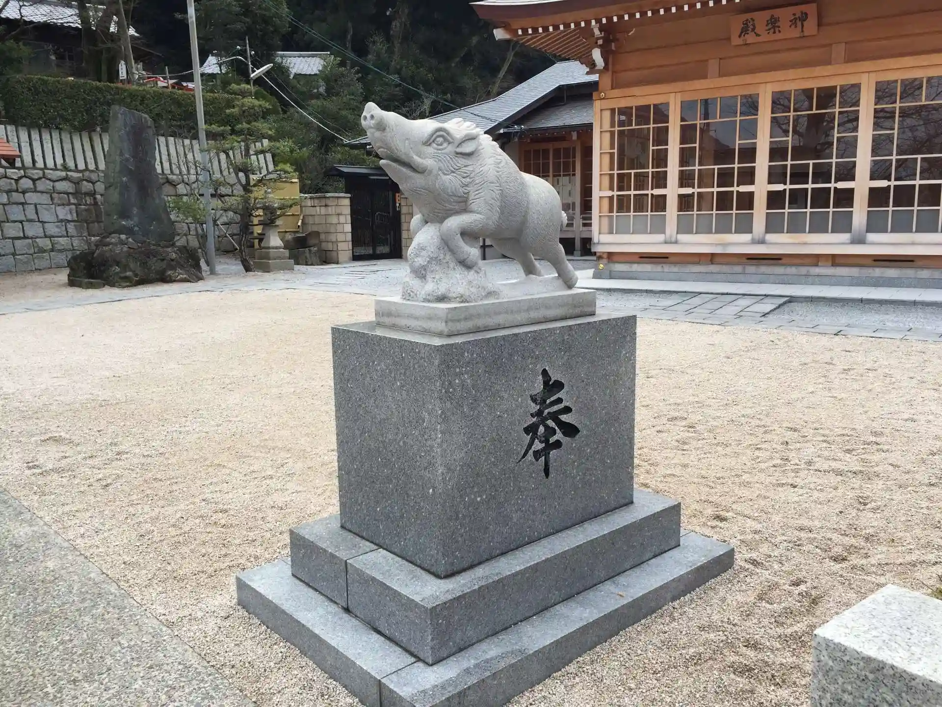 境内にはこま犬のかわりに、猪がいました。