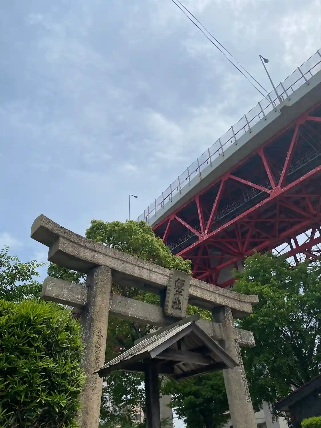 西側の鳥居⛩ 若戸大橋が上を通っています。