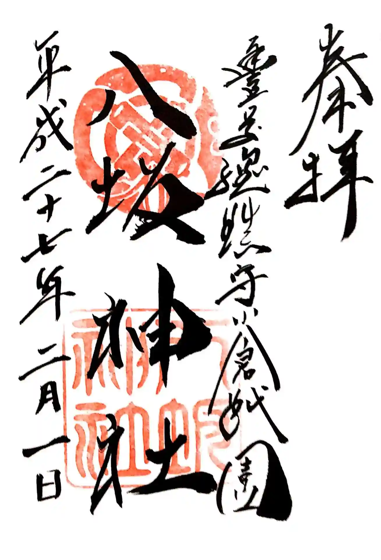 | 御朱印 | あり 右から「奉拝」「八坂神社」と墨書きされています。