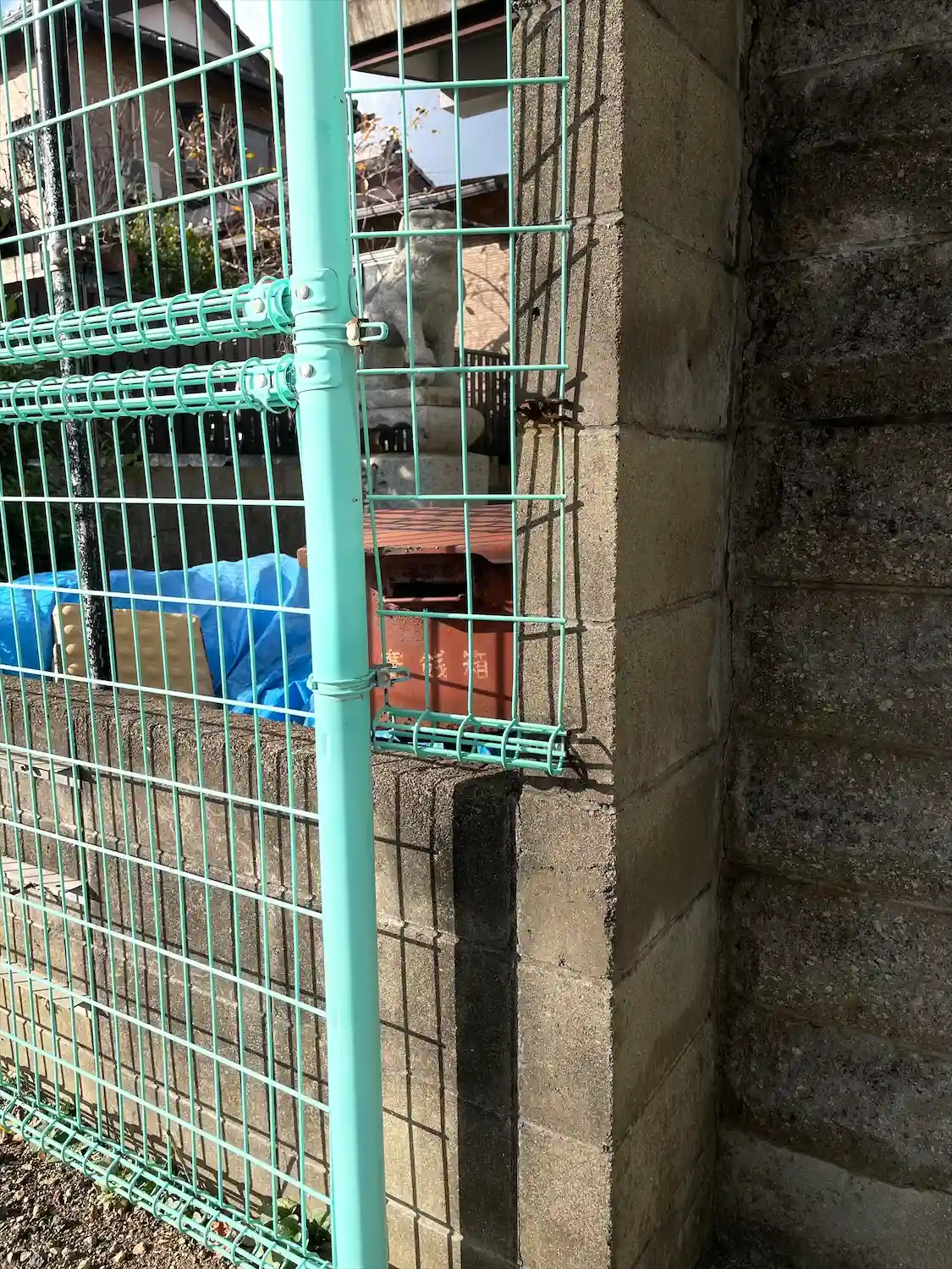 フェンス越しにお賽銭箱に!