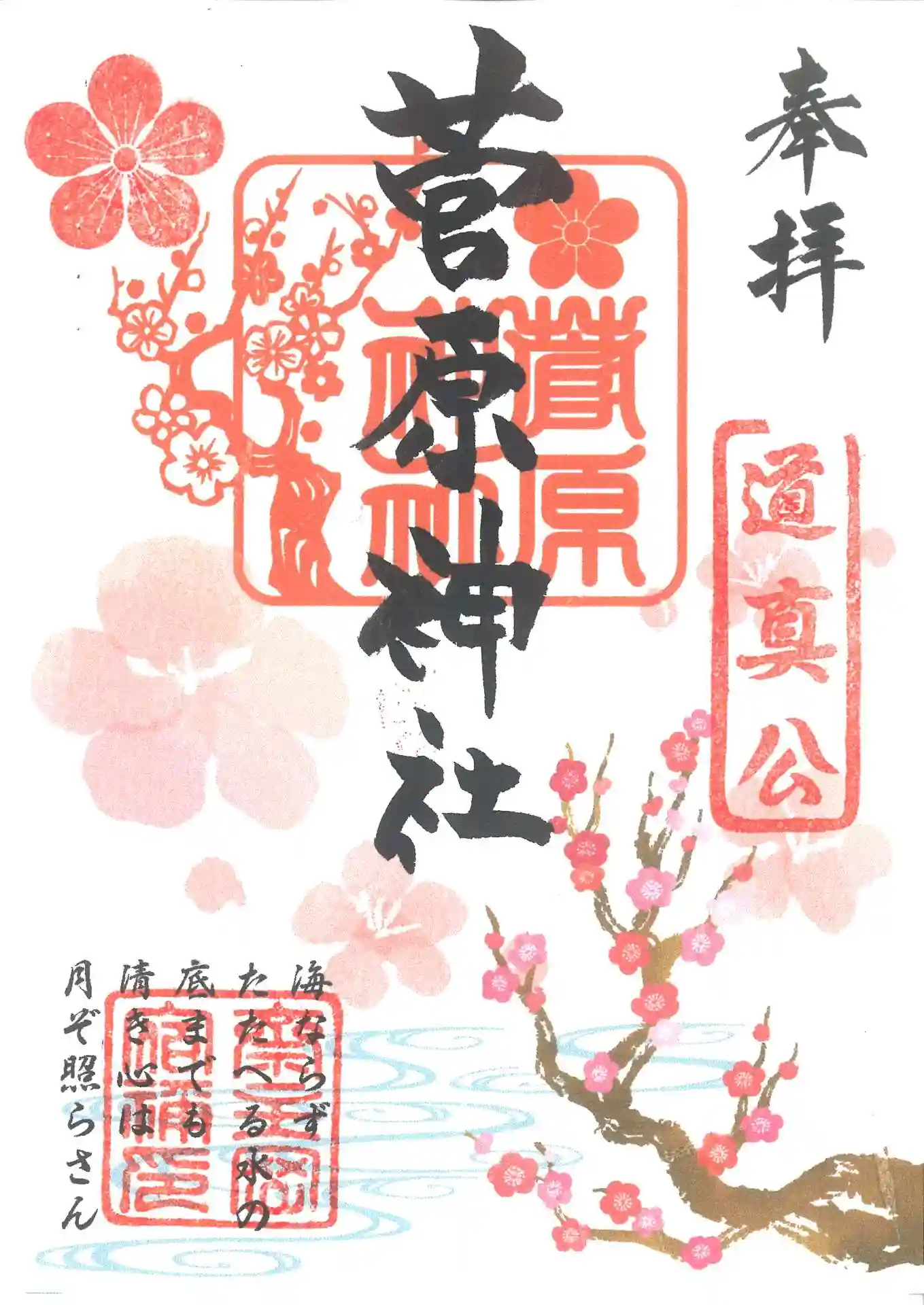 菅原神社の御朱印。豊山八幡神社にて和紙でお渡しです。