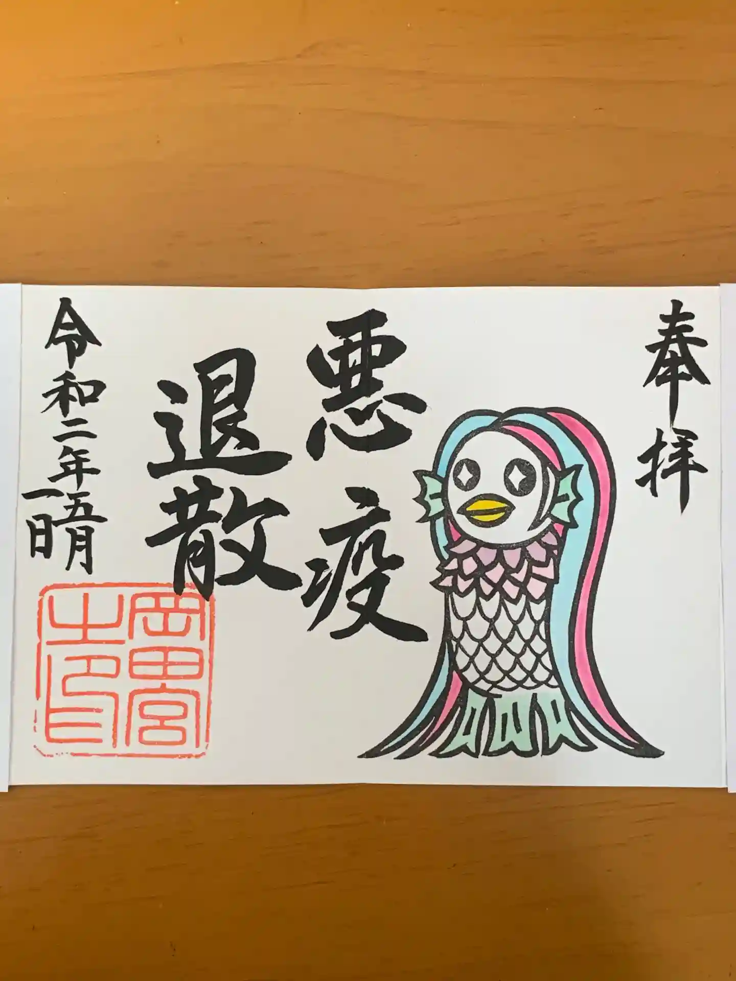 以前から欲しかった御朱印。郵送対応していたため頂くことができました。色々落ち着いたら実際に参拝しに行きたいです。