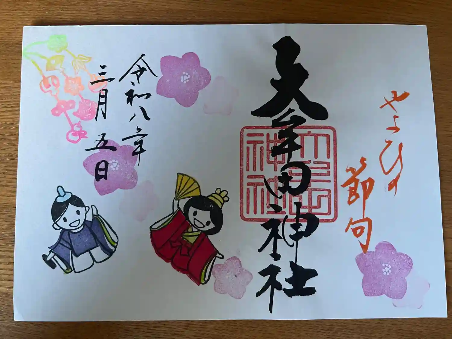 大牟田神社 桜詣 限定切り絵の御朱印です。色鮮やかで、とても美しいです。