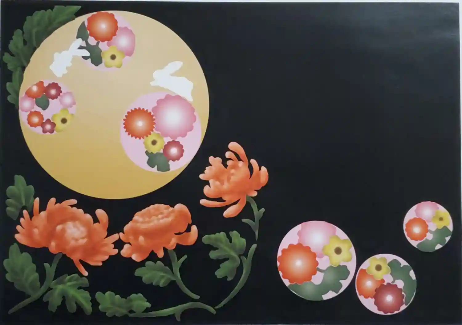 地紙を黒地にして、夜桜を表しています。