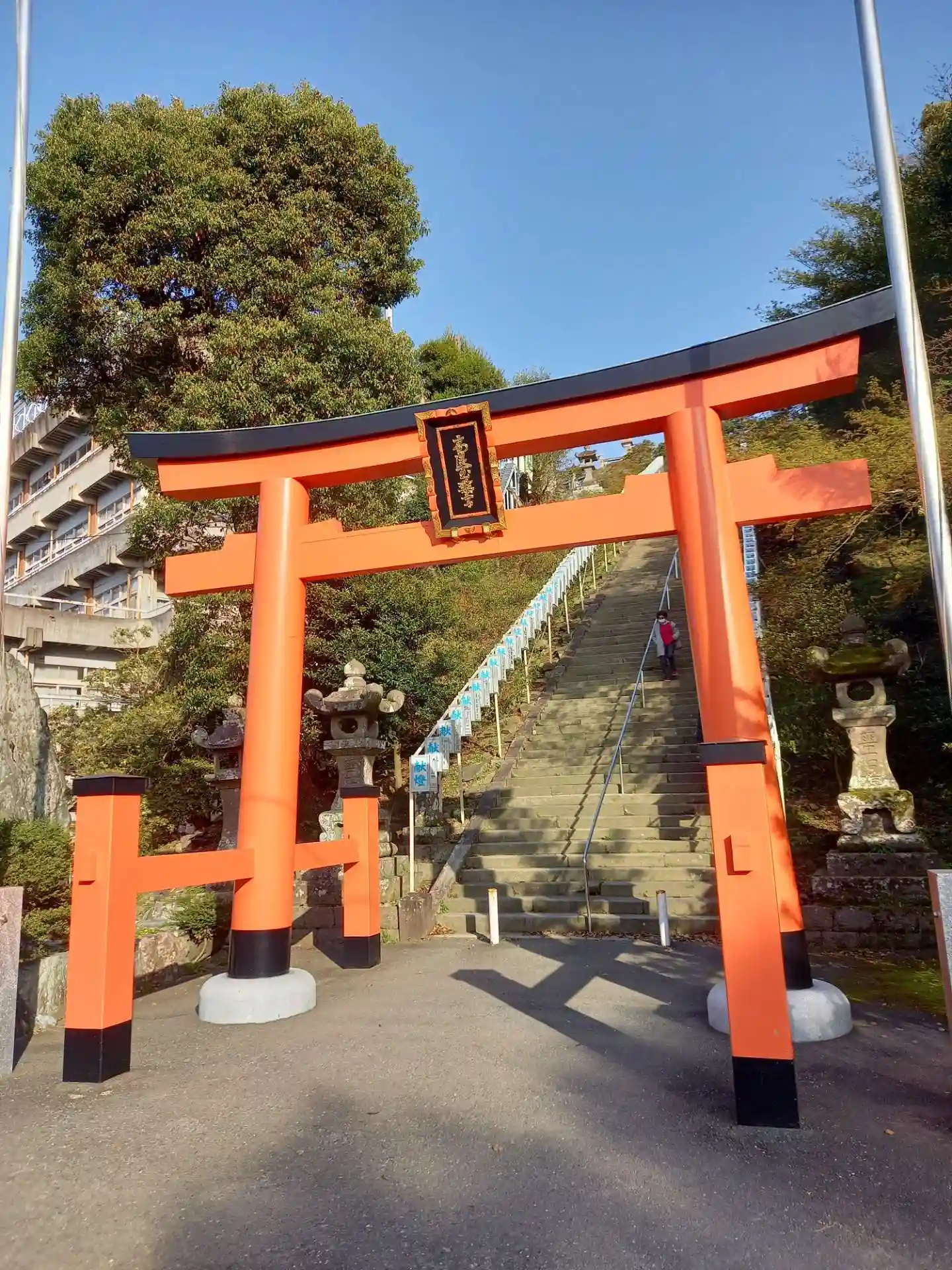 131段の石段を上がりきり振り返ると絶景にビックリ。