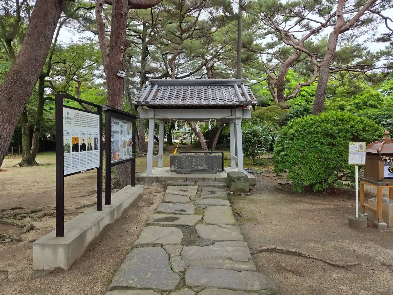 少し西側にずれた位置にある、当社入口全景。
