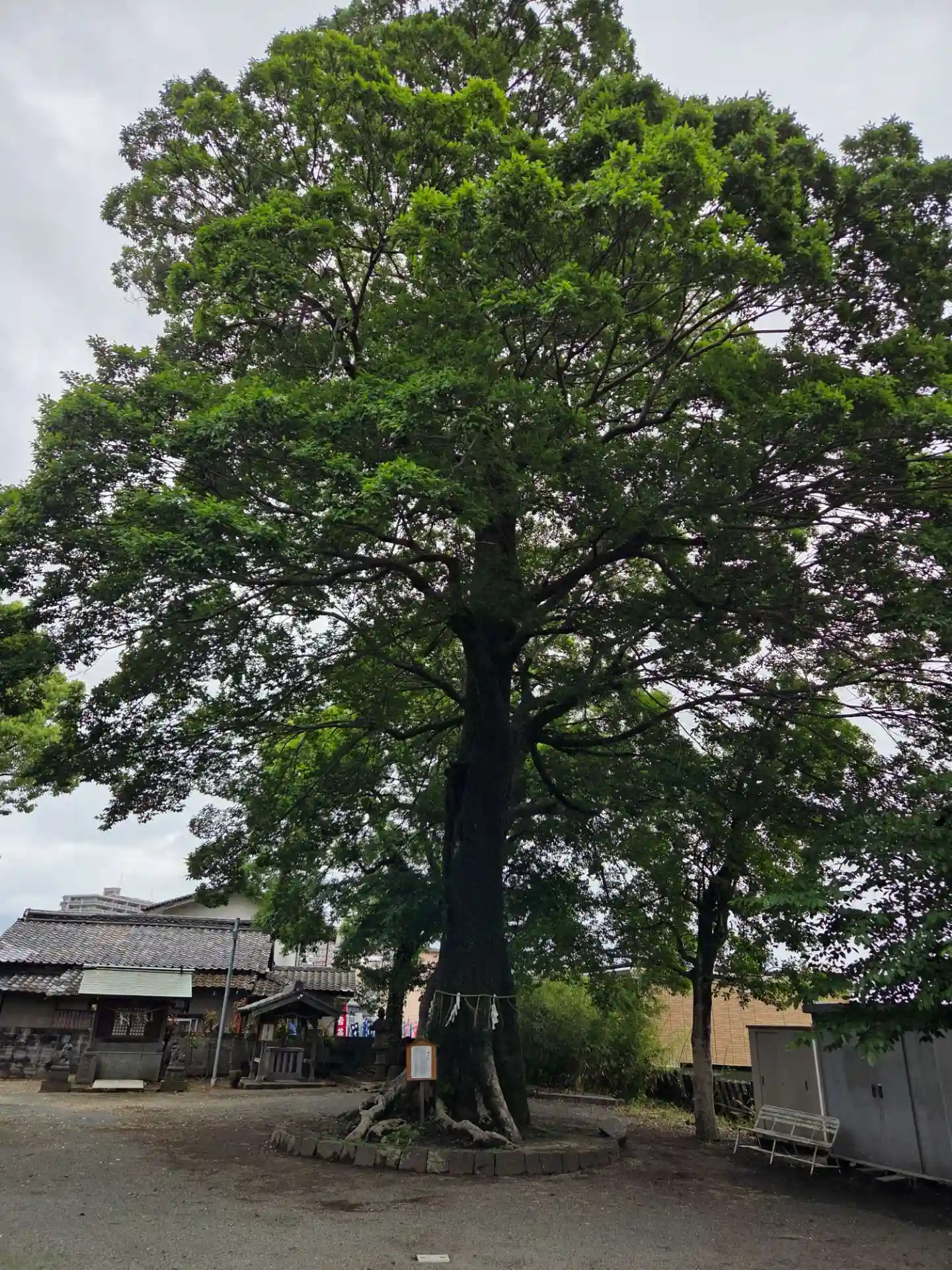 社殿の右奥にある<御神木>。非常に高い。