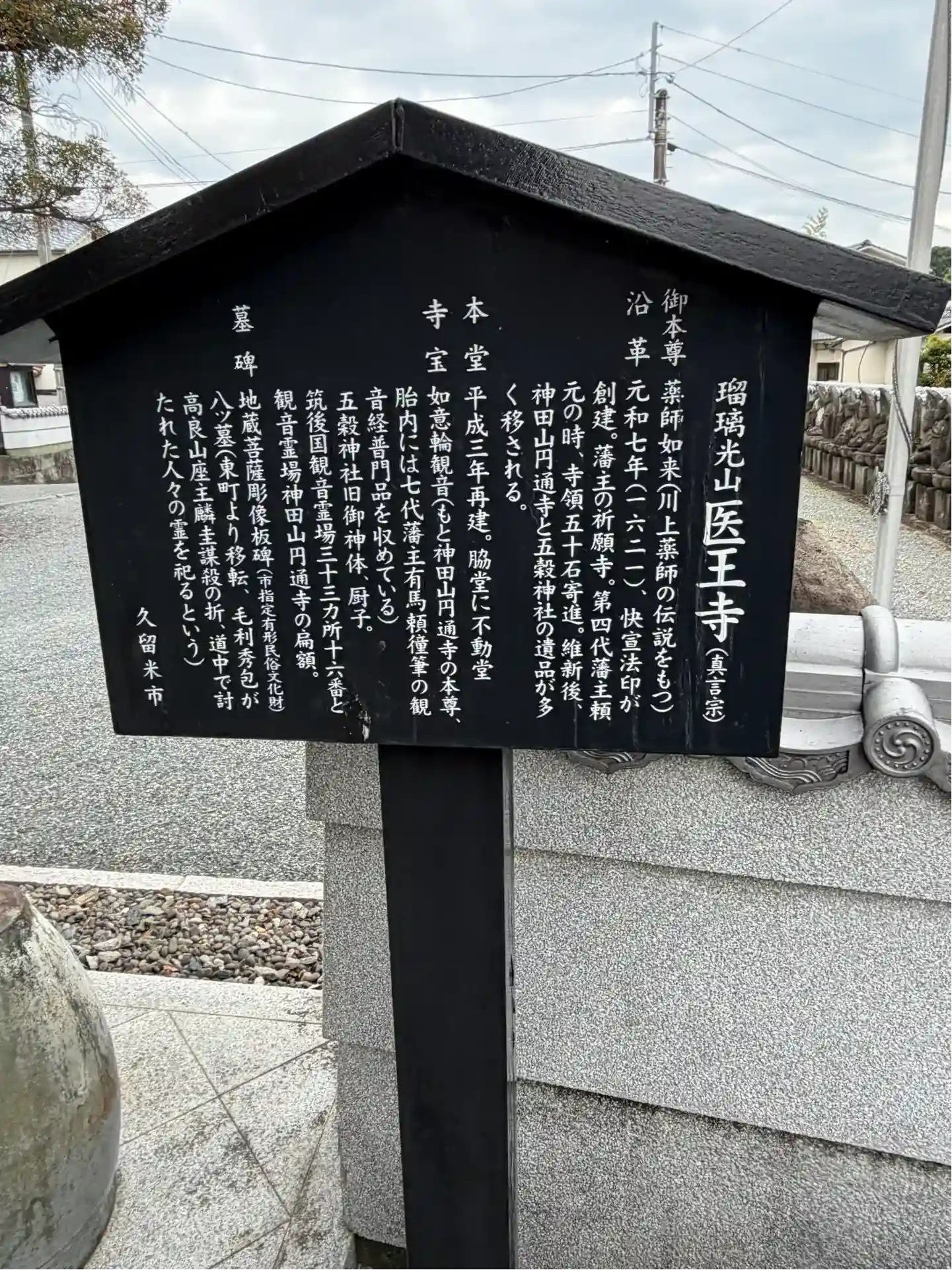 瑠璃光山 医王寺(いおうじ, 高野山真言宗, 1621年) 本堂, 本尊は薬師如来, 有馬藩主の祈願寺, 筑後三十三観音霊場16番札所