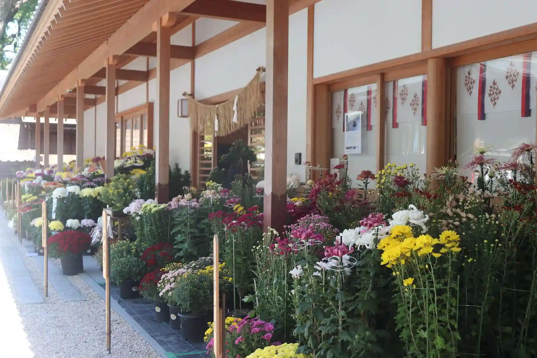 本日、菊花展に先立ち、本殿にて献花祭の神事を執り行いました。美奈宜神社では例年11月に菊花展を開催して今年で43年目を迎えます。菊は皇室の紋にも使用されている日本を代表する花です。神様に奉納する最もふさわしい花といっても過言ではないでしょう。