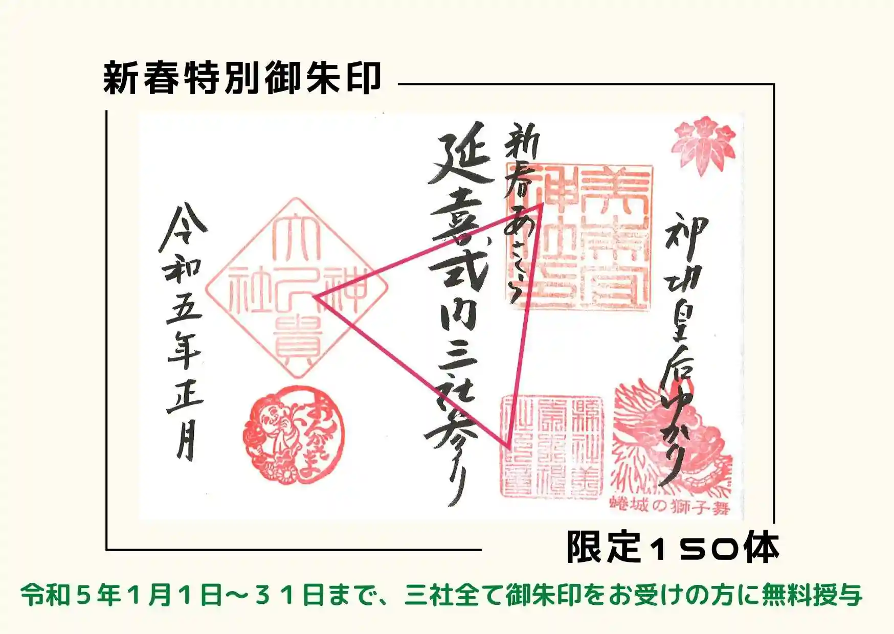 1月中に三社の御朱印をお受けに方に、先着150名に無料でお渡しさせていただきます。