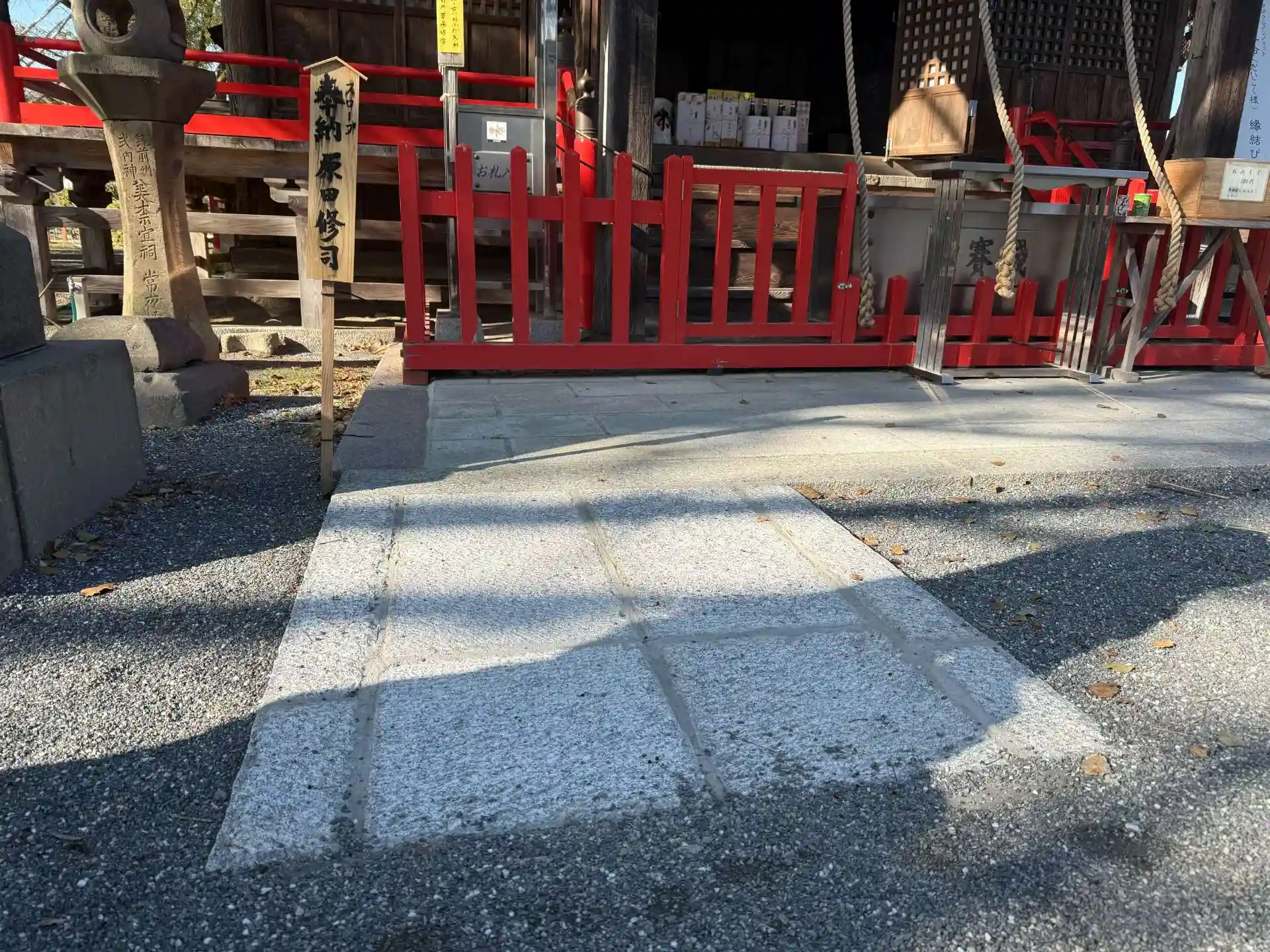 本殿前の石畳までの段差を無くすため、スロープ設置のご奉納をいただきました。資材を含め設置に至るまでご奉納いただきました福田地区の原田修司様、また設置のご協力をいただきました福田地区の北嶋勝春様、誠にありがとうございました。車椅子での参拝者がご自身でお賽銭を入れ、参拝できるようになります。御祭神をはじめ、ご参拝の皆様もお喜びになってくださることと思います。