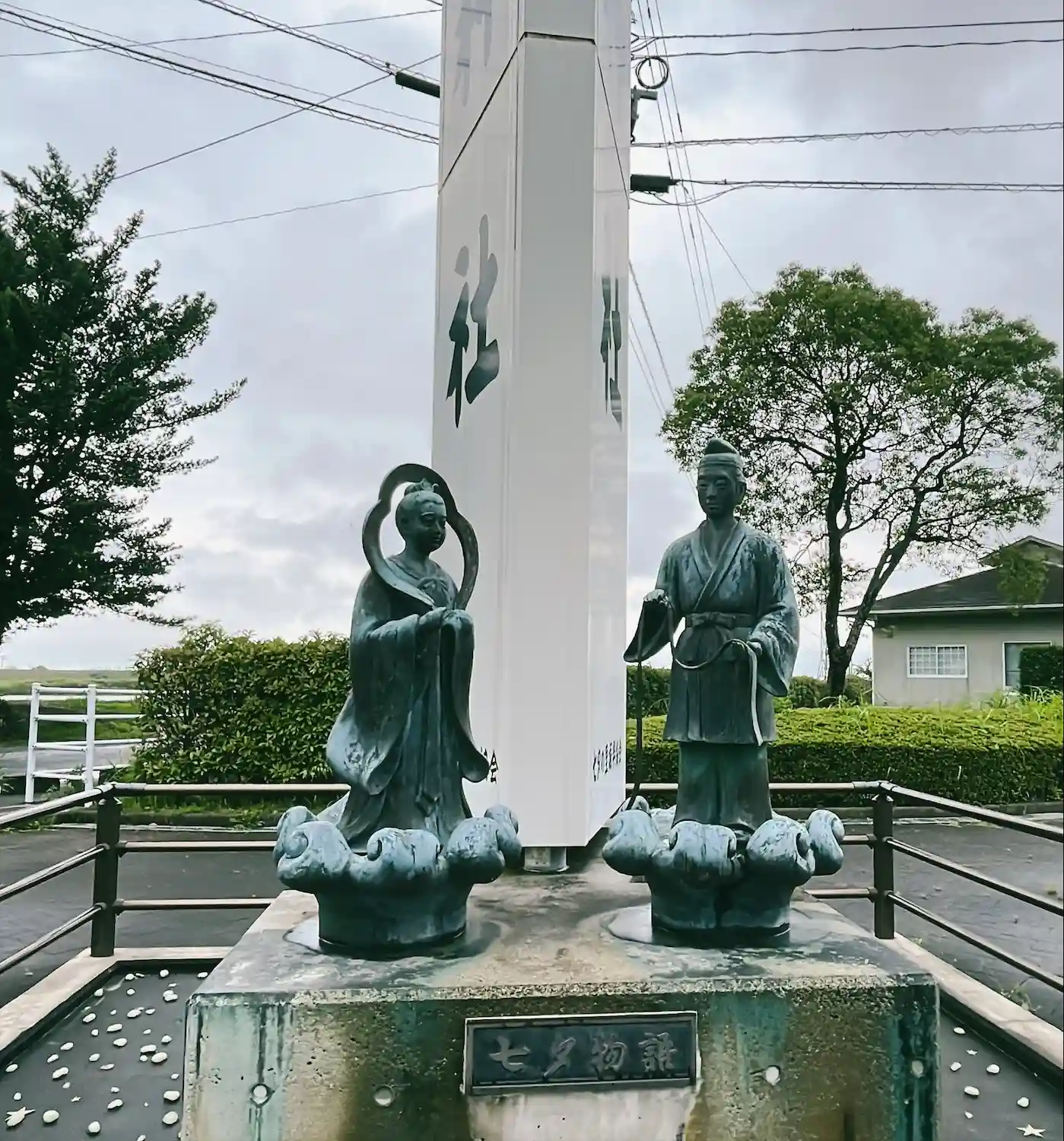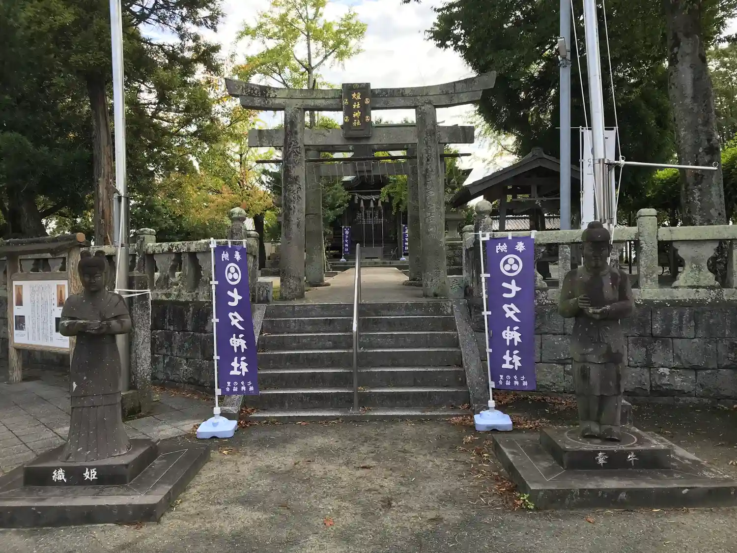 七夕神社と言われることもあり入口には織姫様と彦星様が佇んでおられました。
