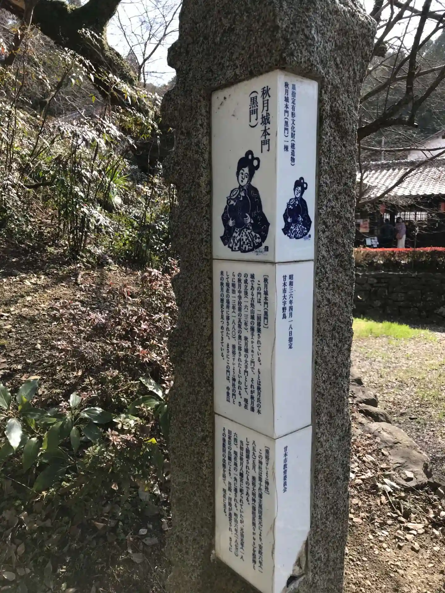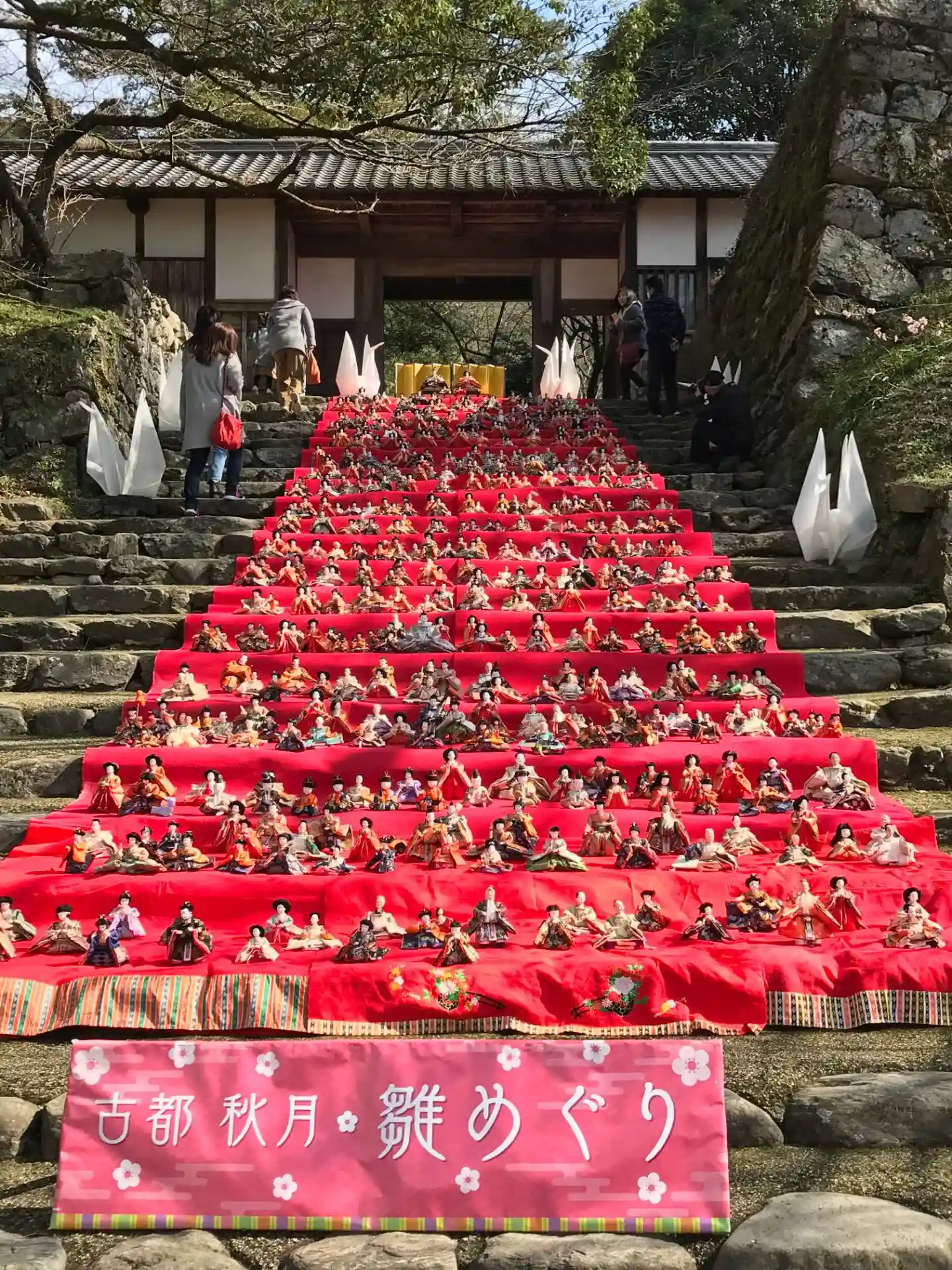 ちょうどひな祭りの時期で秋月城址の石段にたくさんのお雛様が飾られていました。