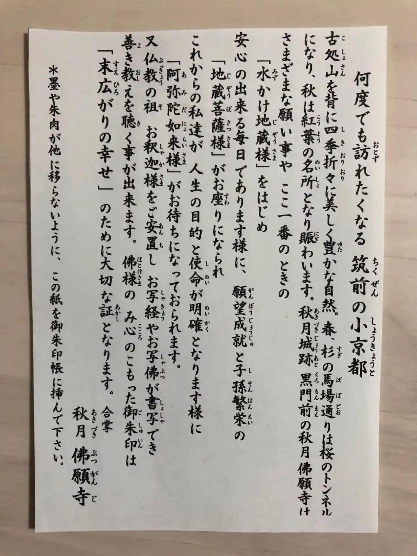 楽しみ方佛願寺 秋月別院のお参りの記録(1回目)