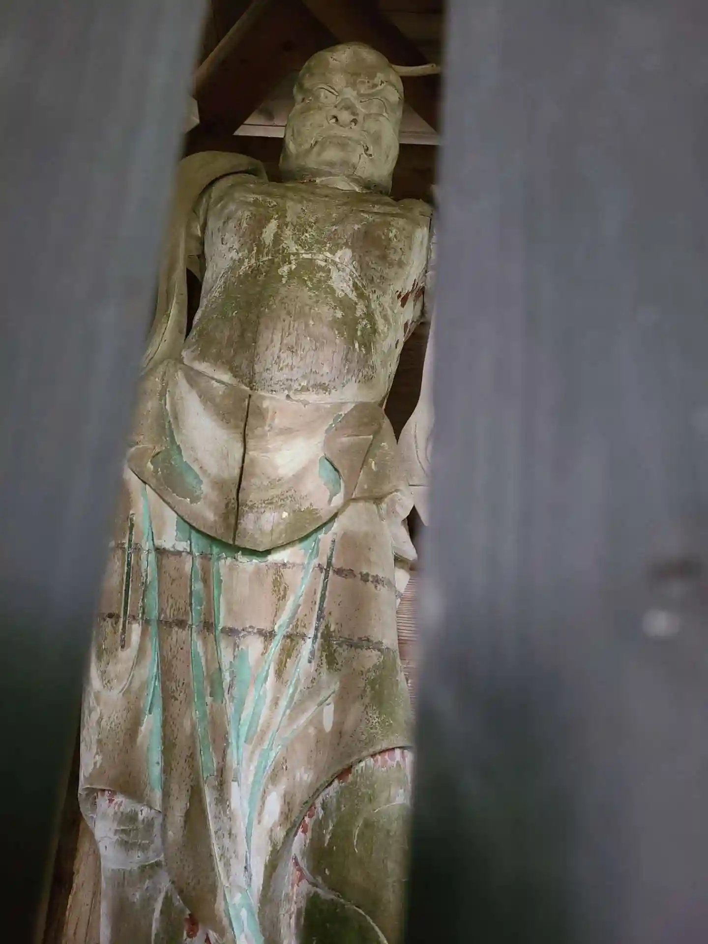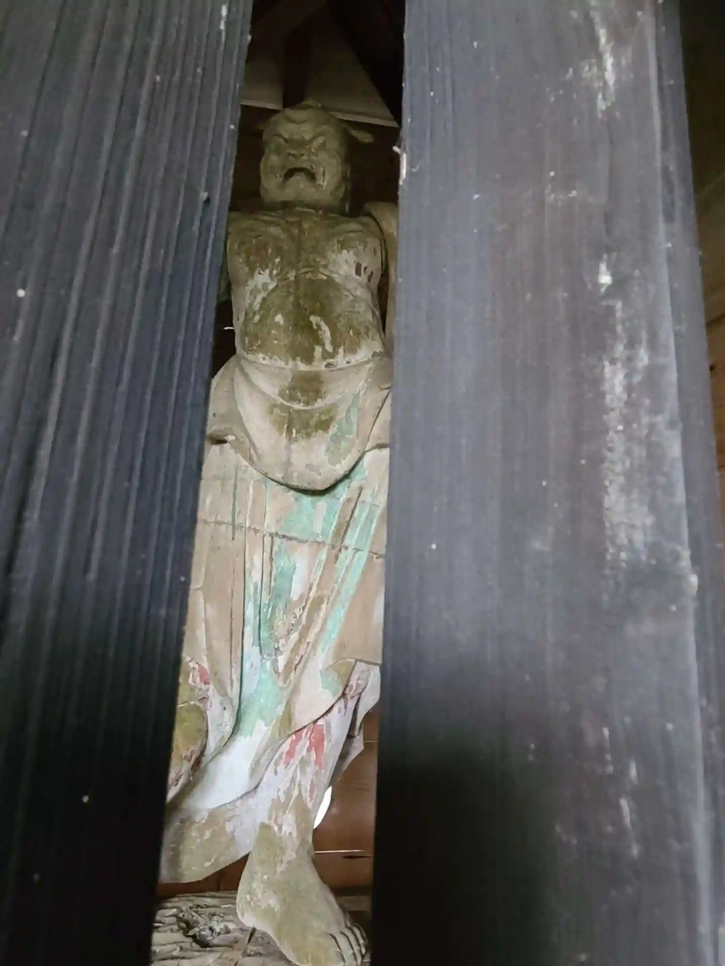 凄い荒れてます。行くまでに廃虚をいくつも見せられて、階段登って人気の無いお寺。で…