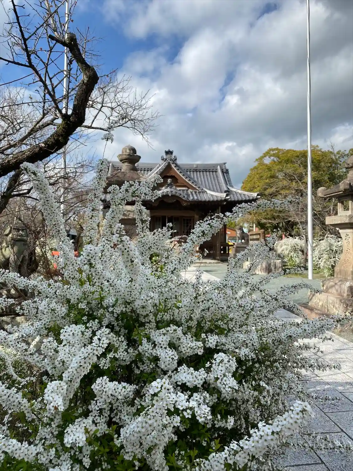 境内に入ると真っ白な雪柳がお出迎え🤍