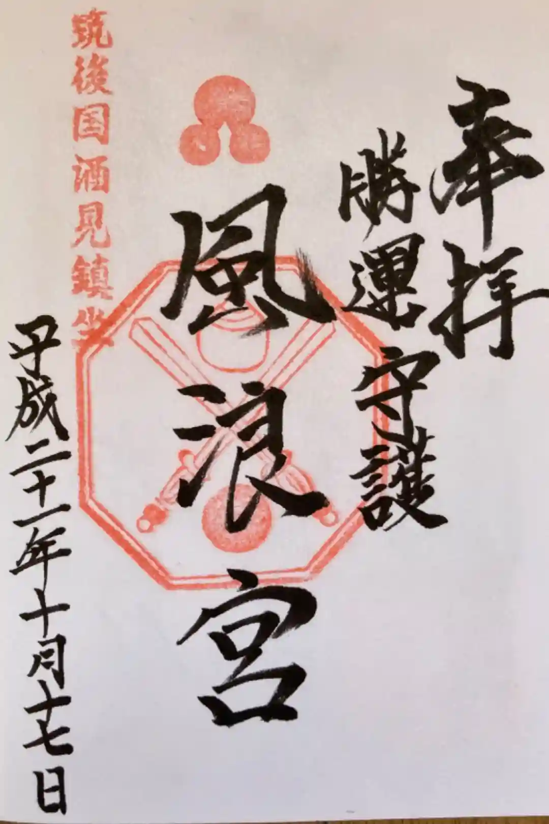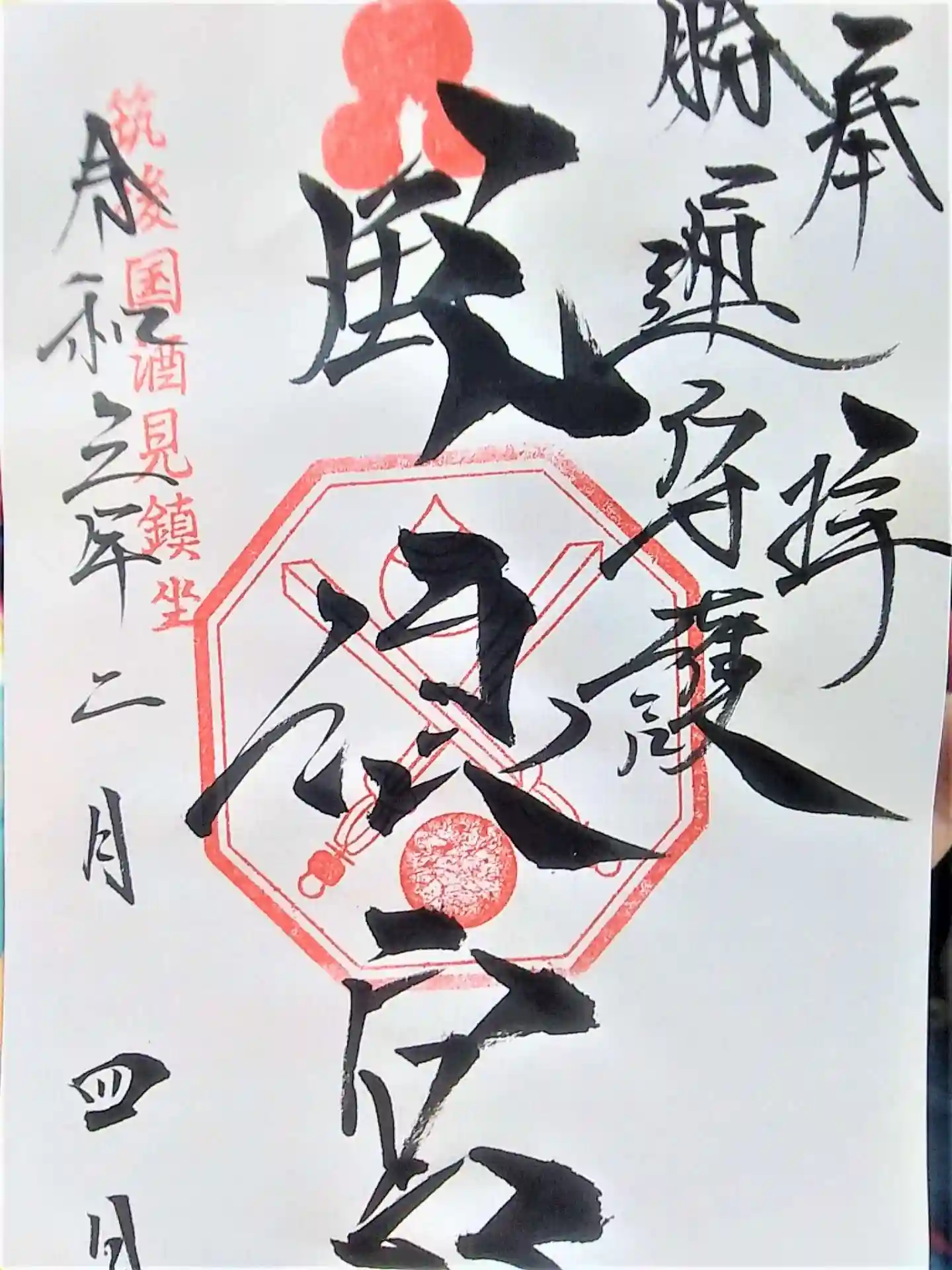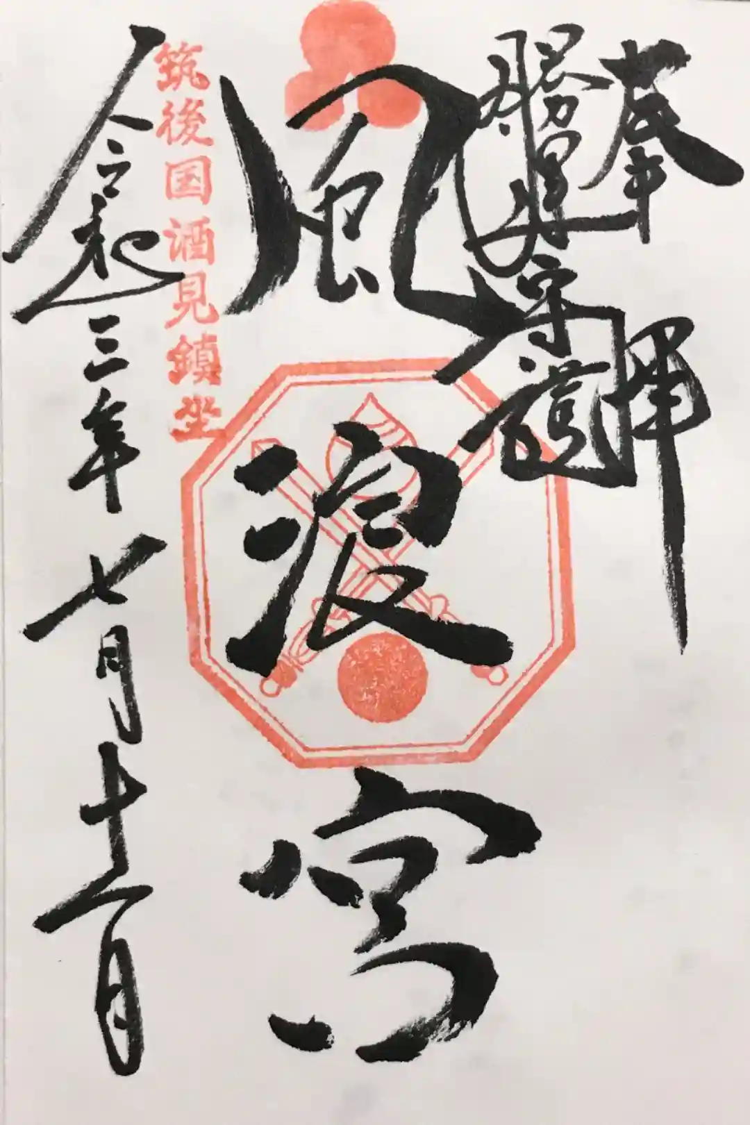 御朱印は直書きで300円。優しい宮司さんが九州弁で対応してくれました。
