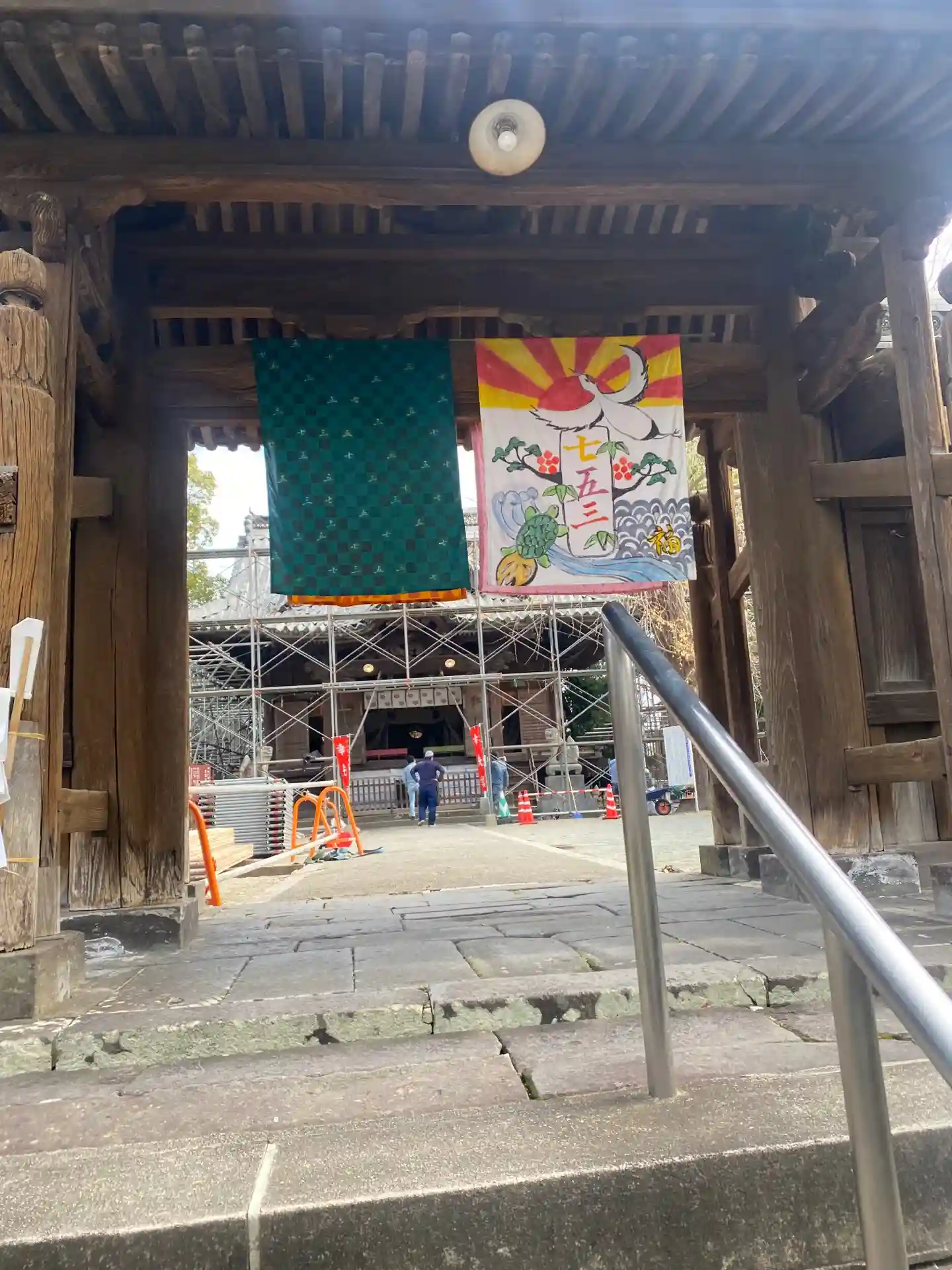 八女市で最大の神社です。丁度保存改修工事の為の足場が組まれておりました。
