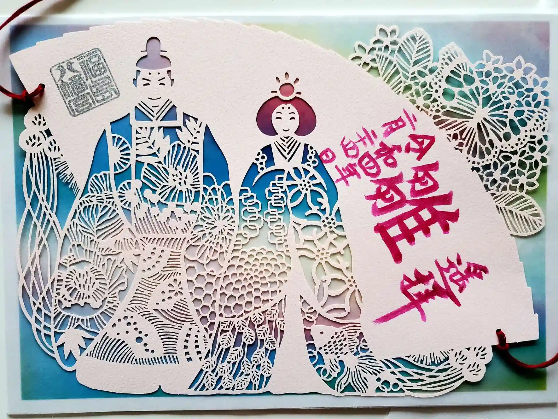 福島八幡宮様より送っていただきましたお雛様🎎の切り絵御朱印です😃
