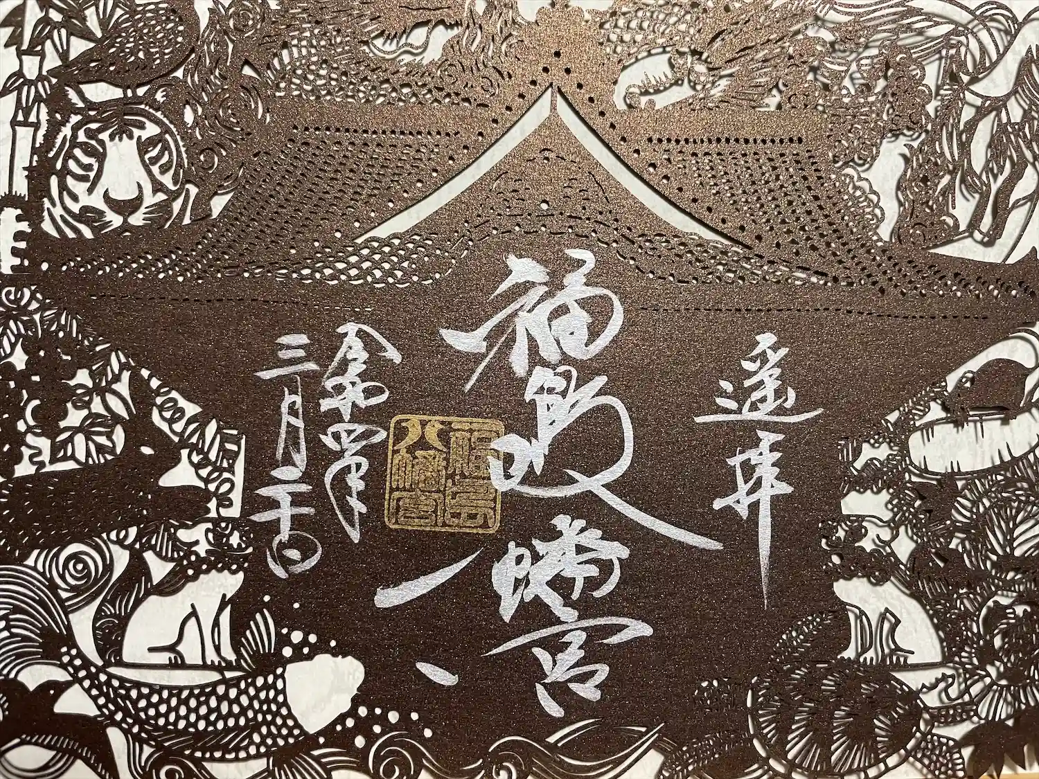 八女市 福島八幡宮の切り絵御朱印です。