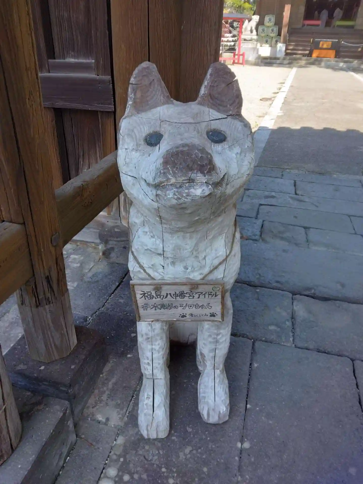 久々の参拝でした。看板犬のしろちゃんも元気そうで、安心しました。看板犬しろちゃんの木彫りの像があってびっくり!とても可愛かったですよ。しろちゃんの御朱印頂きました。