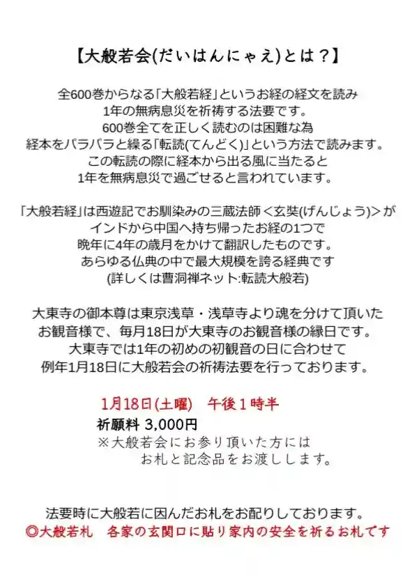 ◎大般若会/18日(土)13時30分~