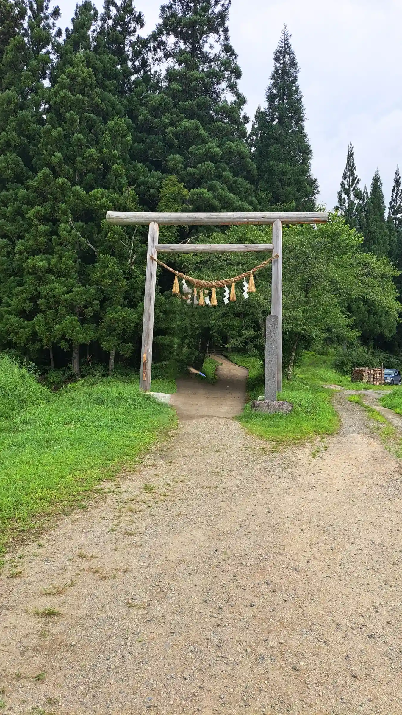 大内宿が昭和56年(1981)に国の重要伝統的建造物群保存地区に選定された際、伝統的建造物の建築物の社寺、鳥居(一之鳥居:自然木神明鳥居・二之鳥居:自然木神明鳥居・三之鳥居:木造両部鳥居)、石段(参道)に選定されています。