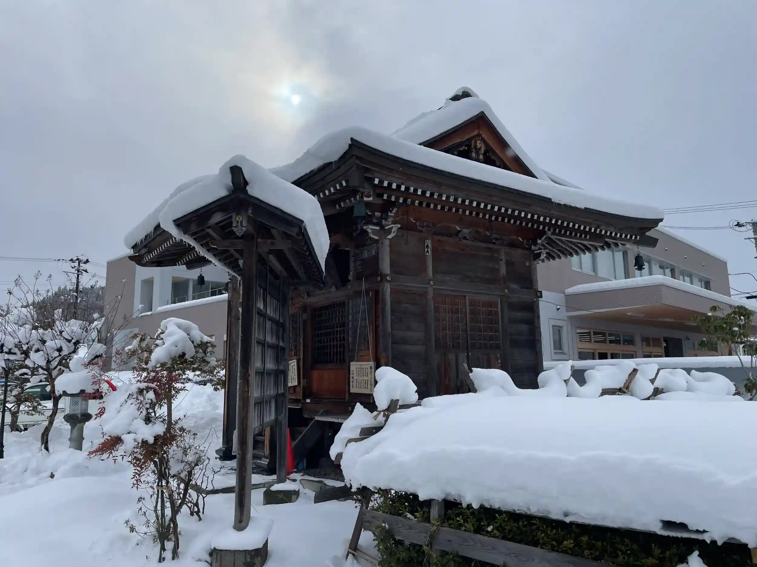出張帰りの列車の待ち時間に参拝しました。会津田島駅の直ぐ側にあります。夜に降った雪が積もっており、静かな雰囲気で参拝出来ました。