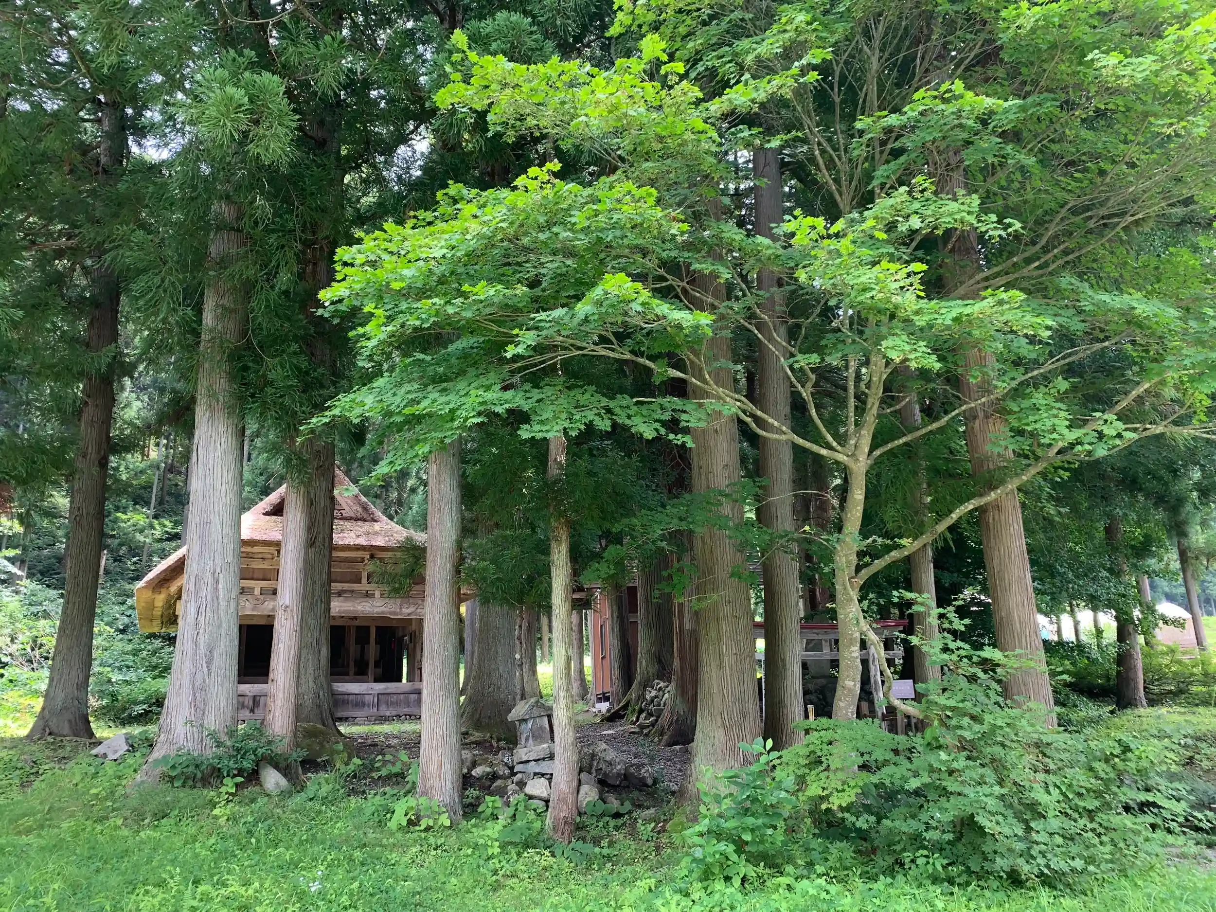 緑の文化財、楡、檜、銀杏、杉の木立の中にあります。