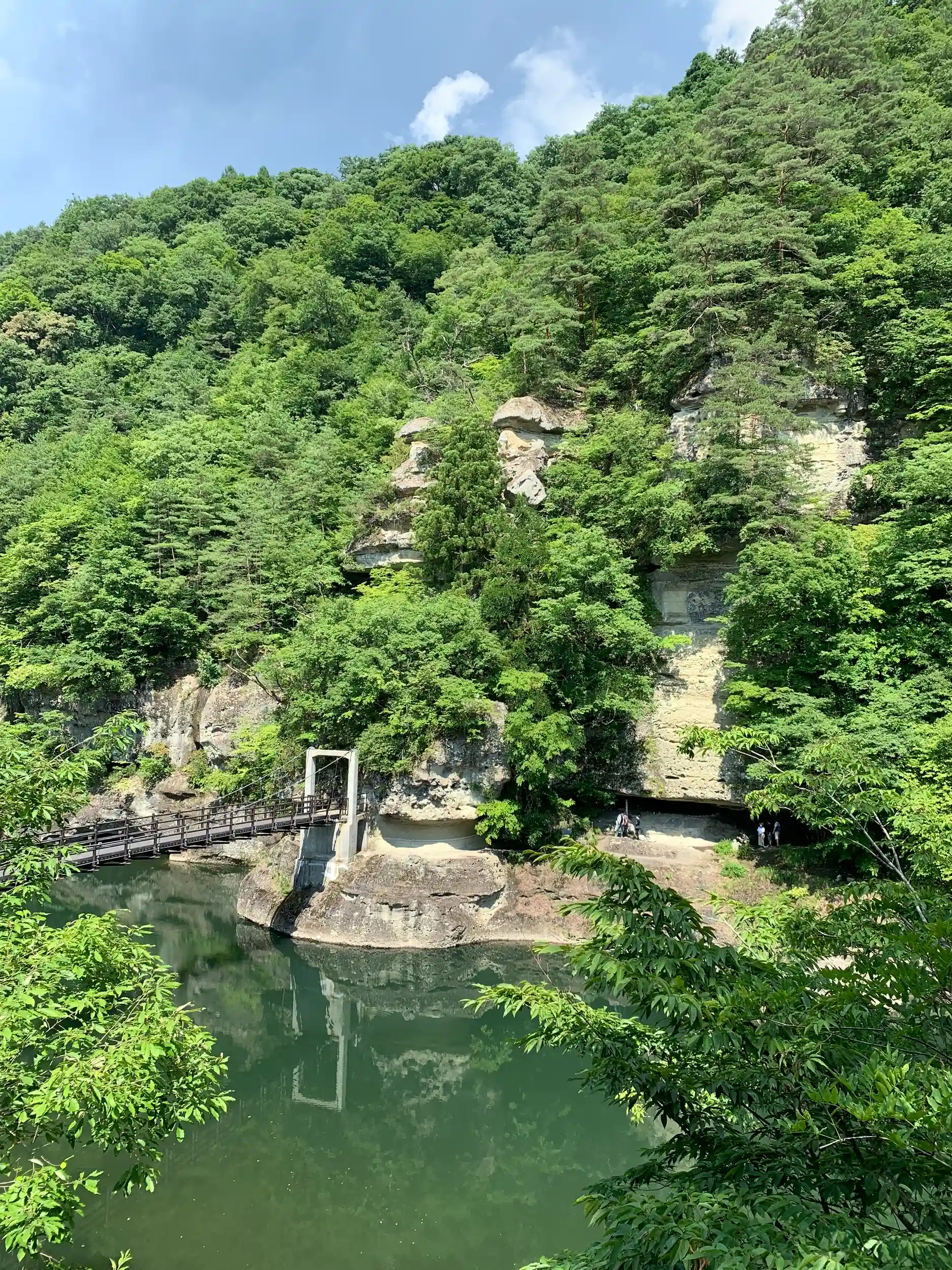 阿賀野川にかかる吊り橋を渡ると、虚空蔵菩薩がお祀りされている御堂があり、坂上田村麻呂が807年に創建したといわれています。
