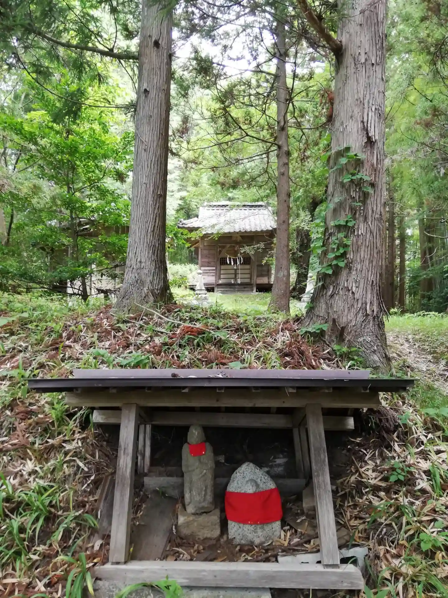 八幡神社の境内は、木々の緑が鬱蒼としてきて、草も生い茂っています。夏のこの時期は植物の力強さを感じる時期となります。