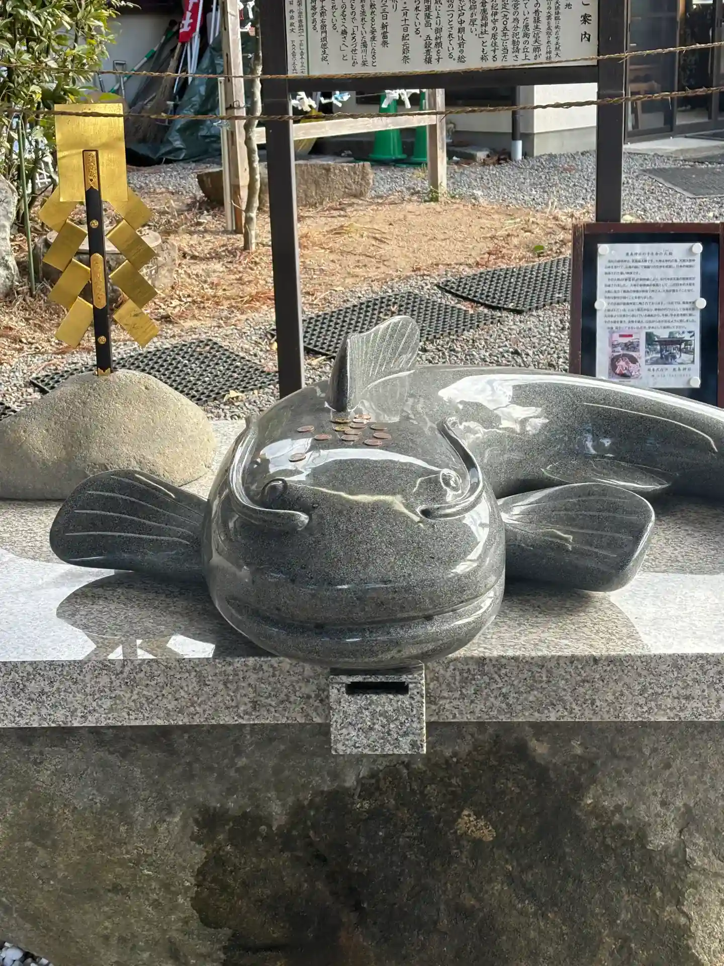 手洗いではナマズがお出迎え。