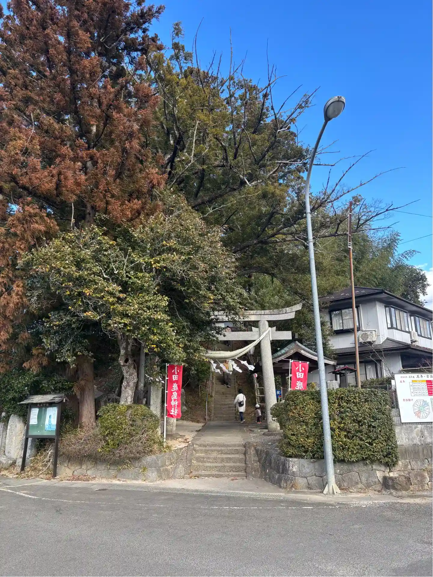 住宅街を抜けると突き当たりにある神社。にも関わらず、お参りする方が多数。