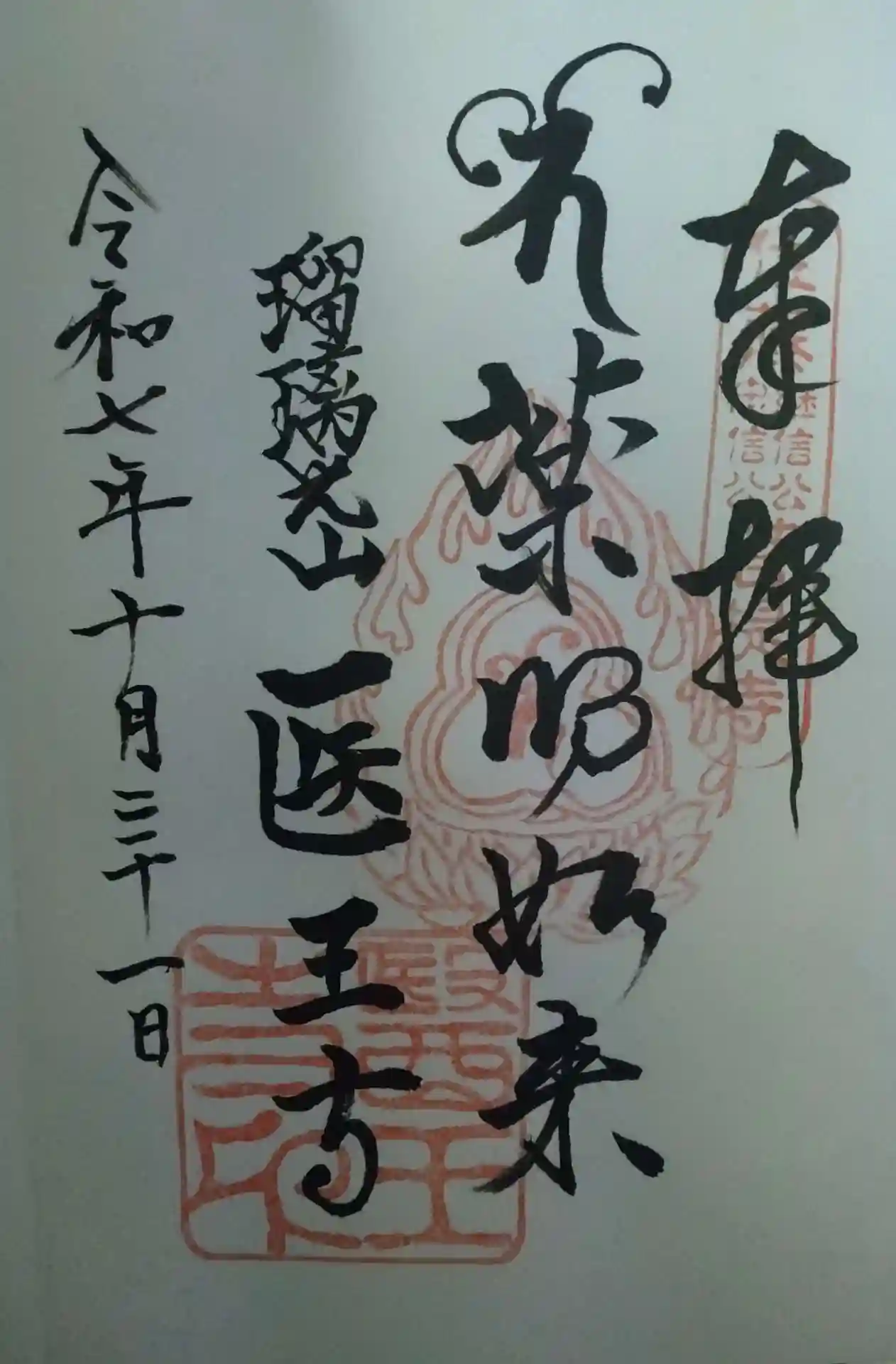 瑠璃光医王寺 料金所にて(直書き御朱印)頂戴致しました